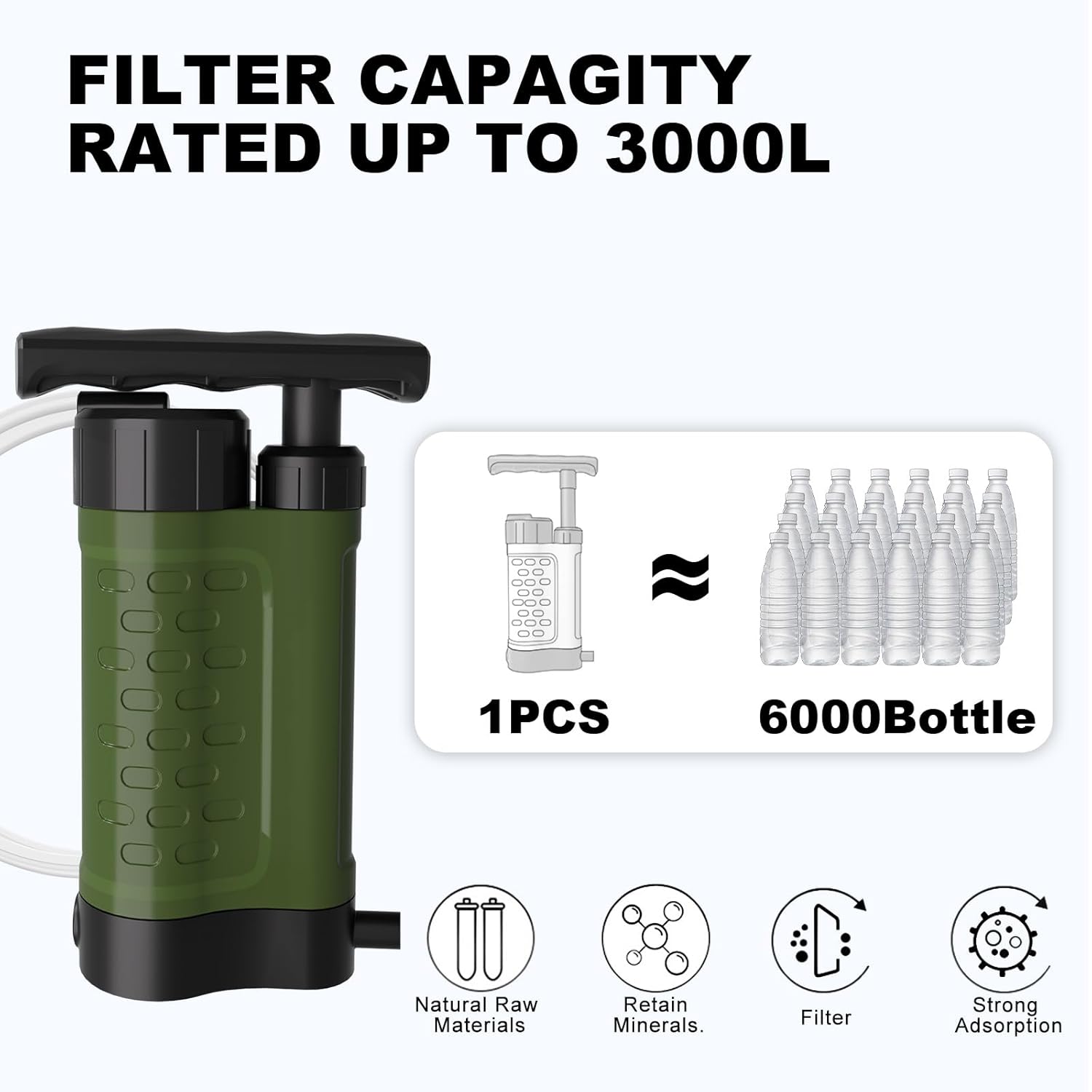 💧High-Capacity & Fast Flow Rate – Experience the convenience of a manual pressurized pump that provides a rapid fast flow rate. This high capacity water purifier significantly reduces pumping effort and wait time, ensuring you can quickly hydrate during demanding activities like hiking, trekking, and mountain climbing.