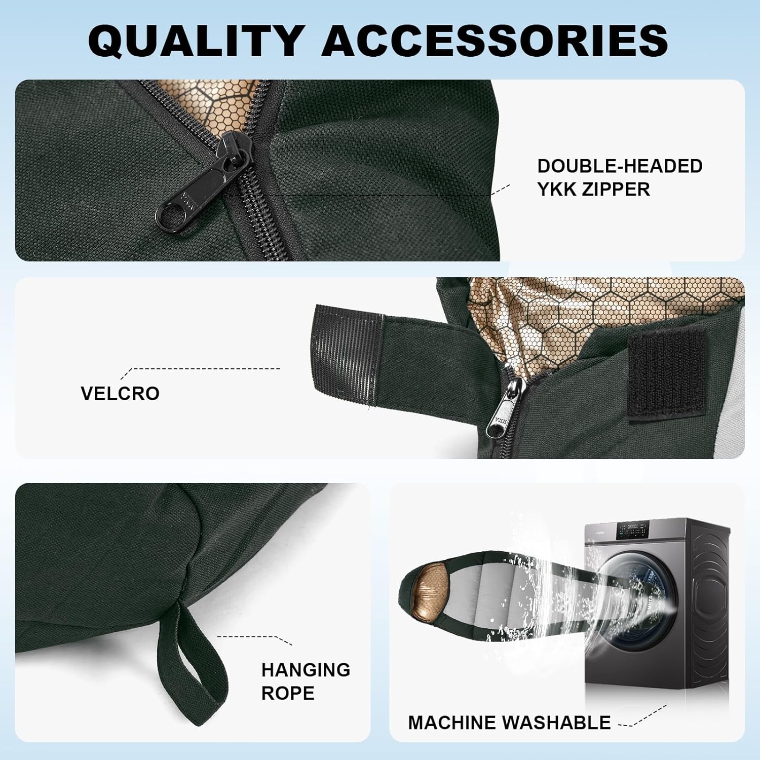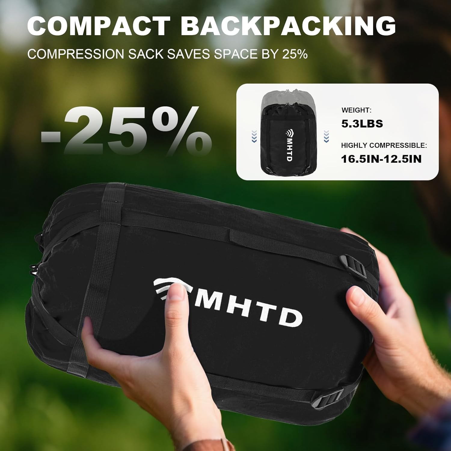 Compact Backpacking: Comes with a cotton canvas compression bag, reducing to 16.5x13x5.9 inches (only 5.3lbs), easily fits into backpack side pockets. Solid drawstring reinforces to prevent falling off