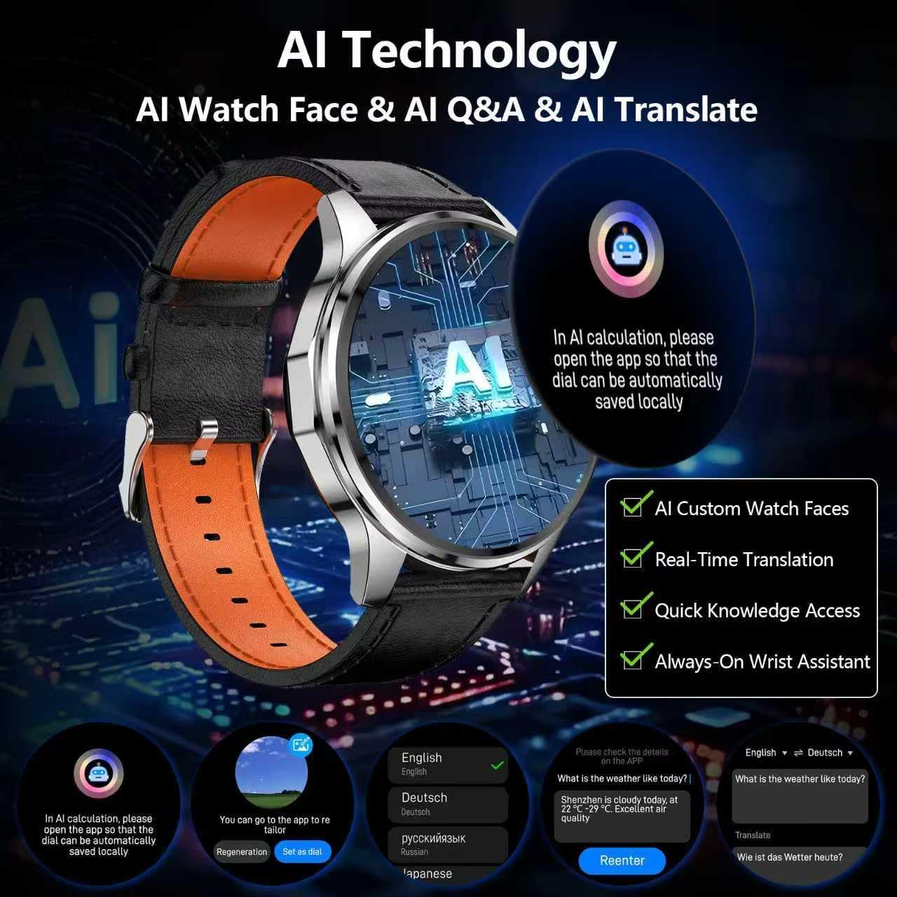Customizable Watch Faces & AI Functionality: This smart watch features a 1.46-inch HD touchscreen and over 100 downloadable and customizable watch faces. You can even use your favorite photos as your watch face. Equipped with AI technology, it supports voice descriptions in multiple languages to generate personalized AI watch faces. The watch’s AI Q&A and AI translation features provide instant answers to questions and break down language barriers, making it an ideal companion for everyday life and travel.