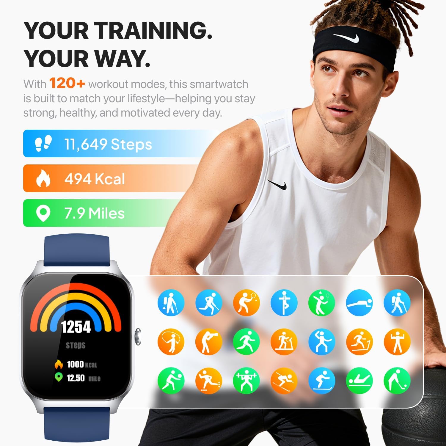 112+ Sports Modes & IP68 Waterproof: Track your fitness journey with 112+ specialized sports modes, from running and hiking to cycling and beyond. The IP68 waterproof design keeps your smartwatch protected during workouts or daily use—rain or shine