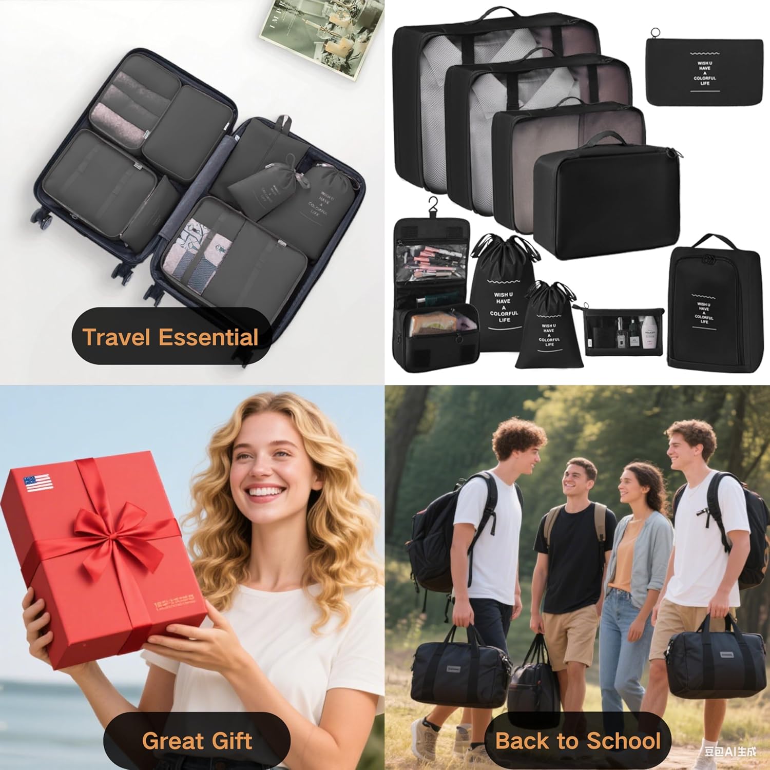 🎒 Versatile for Any Journey: From camping trips to luxury getaways, these cubes flex their muscles. The toiletry bag with leakproof lining handles shampoo spills, while the backpack-transforming laundry bag tackles airport sprints. One set for ALL your wanderlust needs!