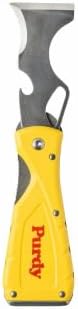 Caulk cleaner, cutter, bottle opener, nail set end, scraper, spreader, roller cleaner, paint tin opener, flat head screw remover and pocket clip