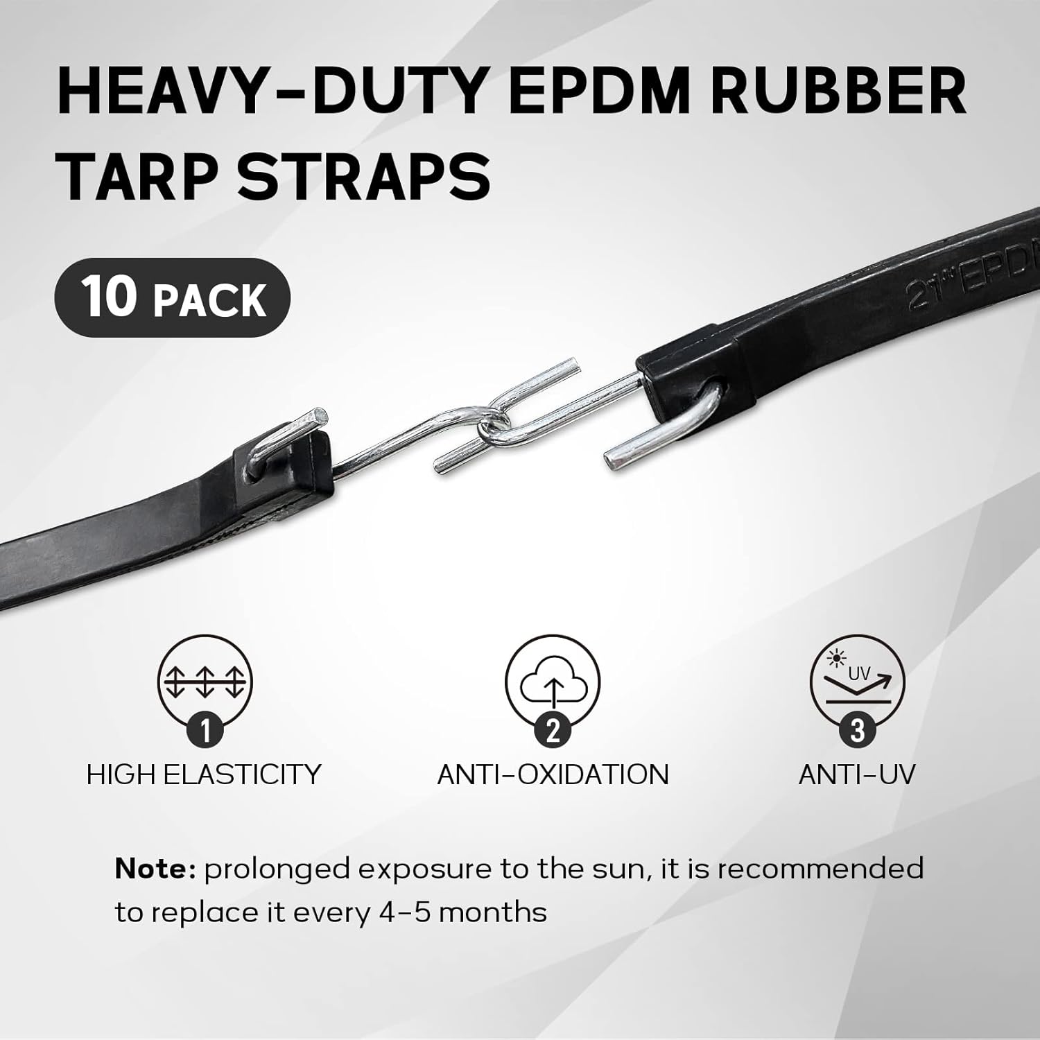 Rustproof Metal S-hooks: The S-hooks are extremely easy to attach to the ends of the straps and will not unhook or loosen, they are easy to secure, ensure that goods will not fall off at rest or in motion, and have a superb pulling and carrying capacity. The tarp straps can be easily tied together with many items, storing and transporting essentials and meeting your work requirements in two seconds