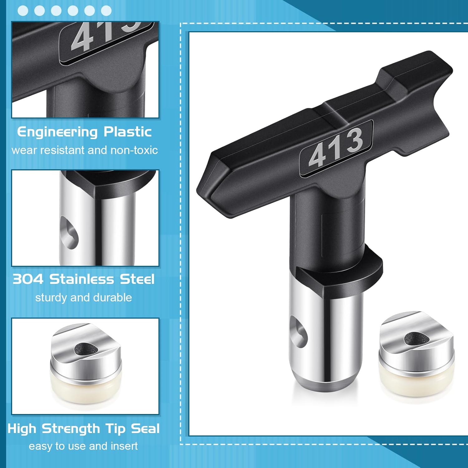 Reliable to Use: reversible airless paint nozzle is made of metal and plastic, and its tip seal is made of stainless steel gasket and nylon; The mesh of the filter is uniform, and it is not easy to deform, suitable to replace the airless spray gun filter parts