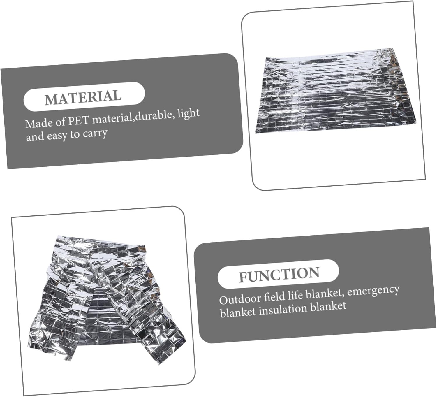 Emergency blanket:an emergency cold-proof blanket, which can be used as a blanket during rest to isolate the outside air and achieve warmth,foldable survival blankets