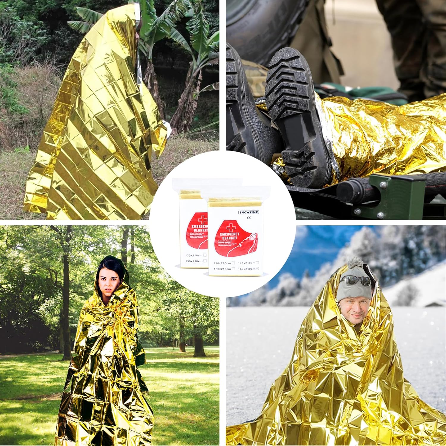 🛡️【10-PACK EMERGENCY BLANKETS】The Emergency Blankets Survival kit comes in packs of 10, and each survival blanket is individually folded, wrapped, and sealed for easy storage and retrieval. They are reusable, providing you with multiple of warmth when necessary