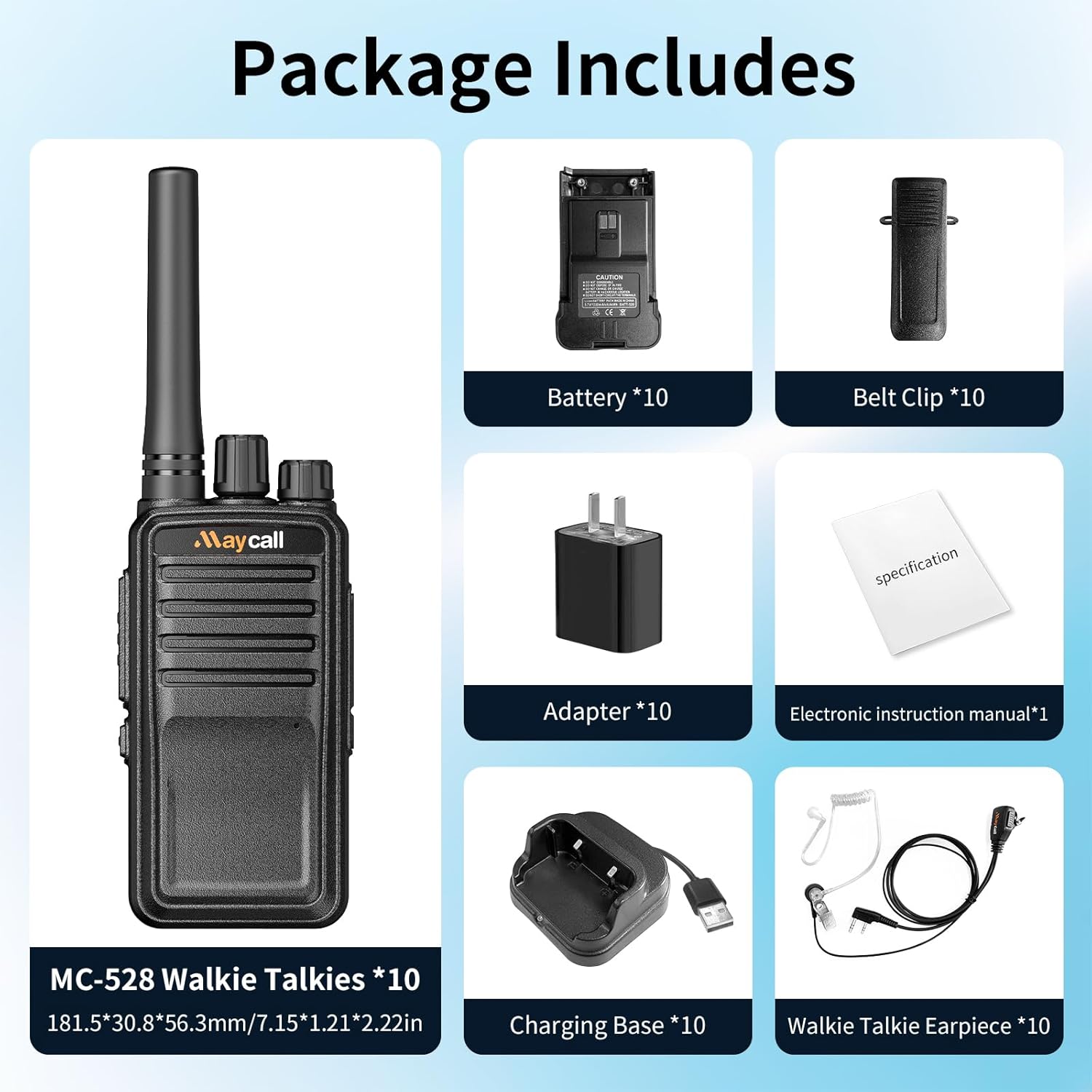 Walkie Talkie with Ear Hook Earpiece: The MC-528 walkie talkie is equipped with two hanging ear headphones, fit to your ear; soft and comfortable; rotate to fit in with left and right ears; provides you with clearer and safer communication.