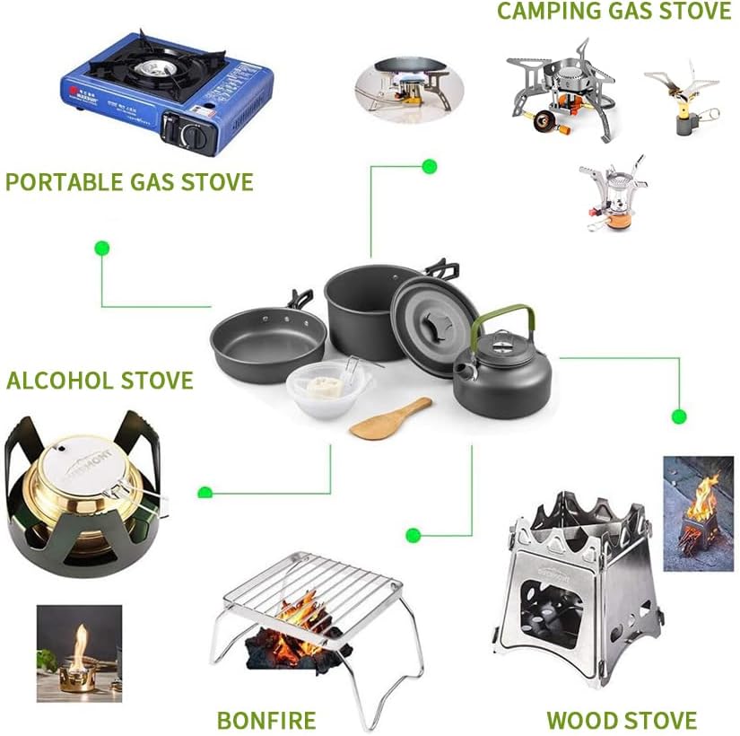 🥾 10pcs Camping Cookware Camping Pots and Pans Set with Kettle Plastic Bowls and Soup Spoon for Camping, Outdoor Cooking and Picnic, Backpacking (Green) — Review, Key Features & Current Price