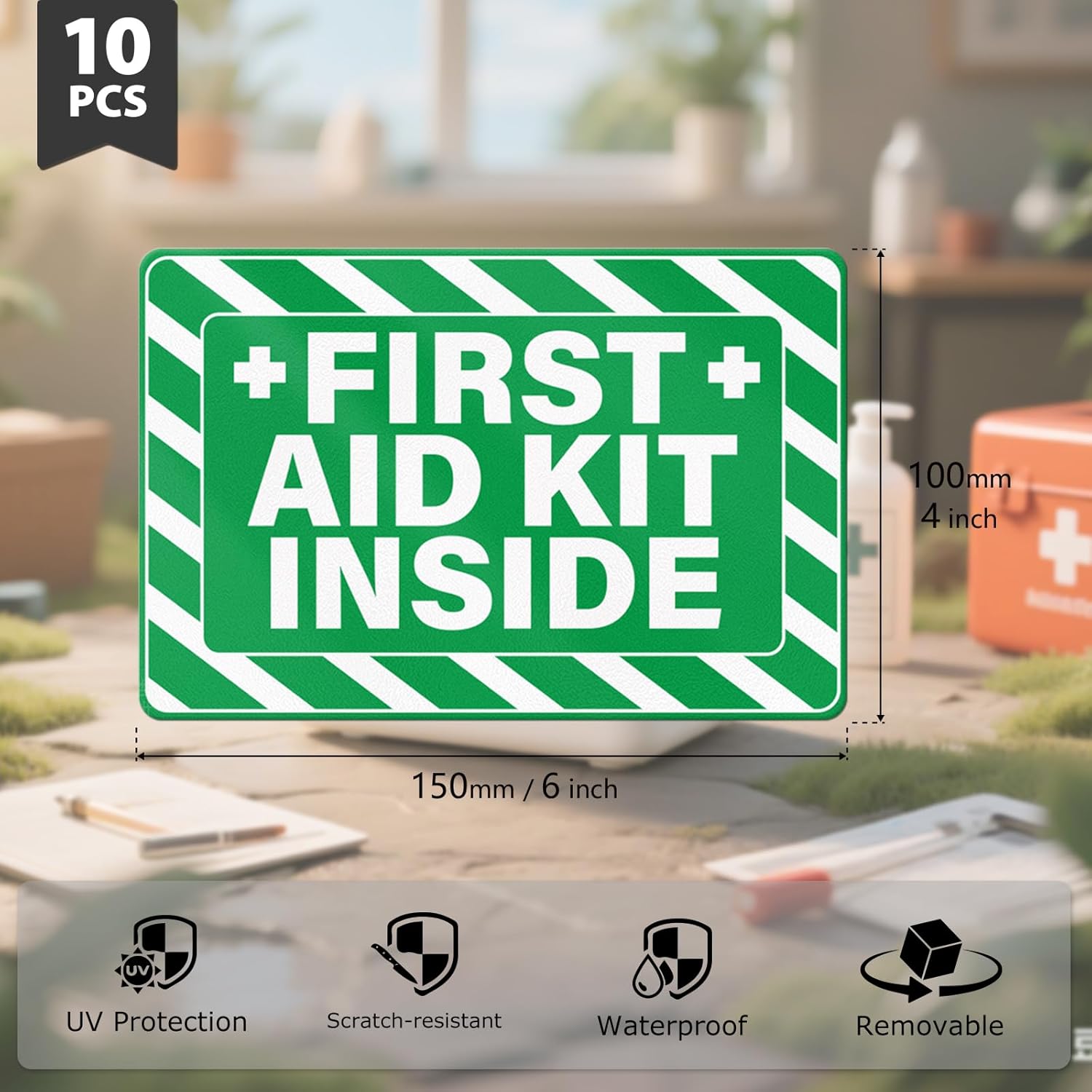 Packing Include: You’ll get 10 pieces signage, and the multi-pack is designed to meet your need for quantity. The size have been carefully designed to be clear and easy to read, ideal for small first aid kits or for marking the location of first aid kits.