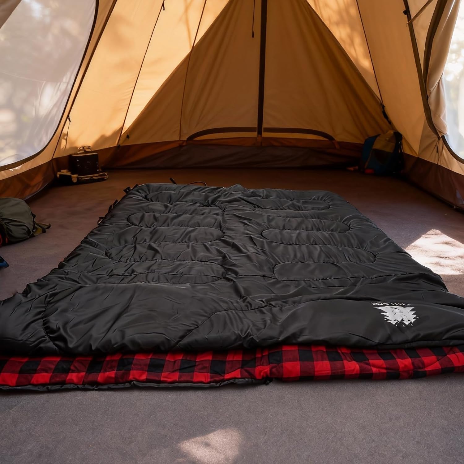 COZY: 100% super soft brushed cotton flannel lining,and filled with a high level 3D synthetic fiber fill,Features fastening-straps for keeping zippers safely closed,and unzips at the top or bottom for easy access and ventilation,perfect for camping in 3 seasons.