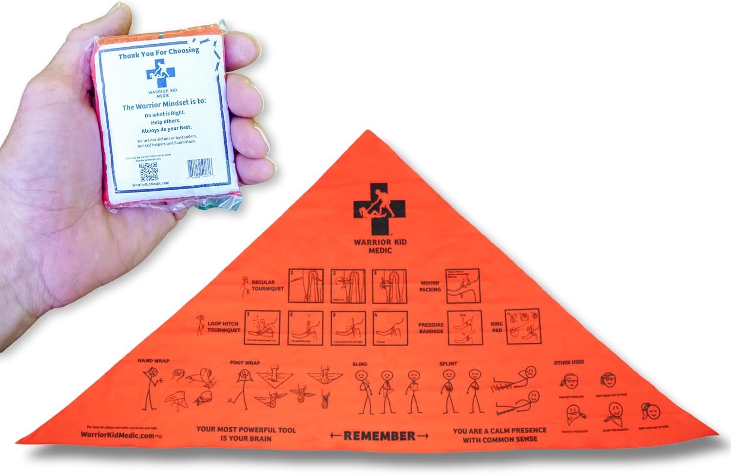 EMERGENCY INJURY STABILIZATION Intended for use in first aid care as a sling, tourniquet aid, or splint wrap to help stabilize injuries until professional medical care is available.