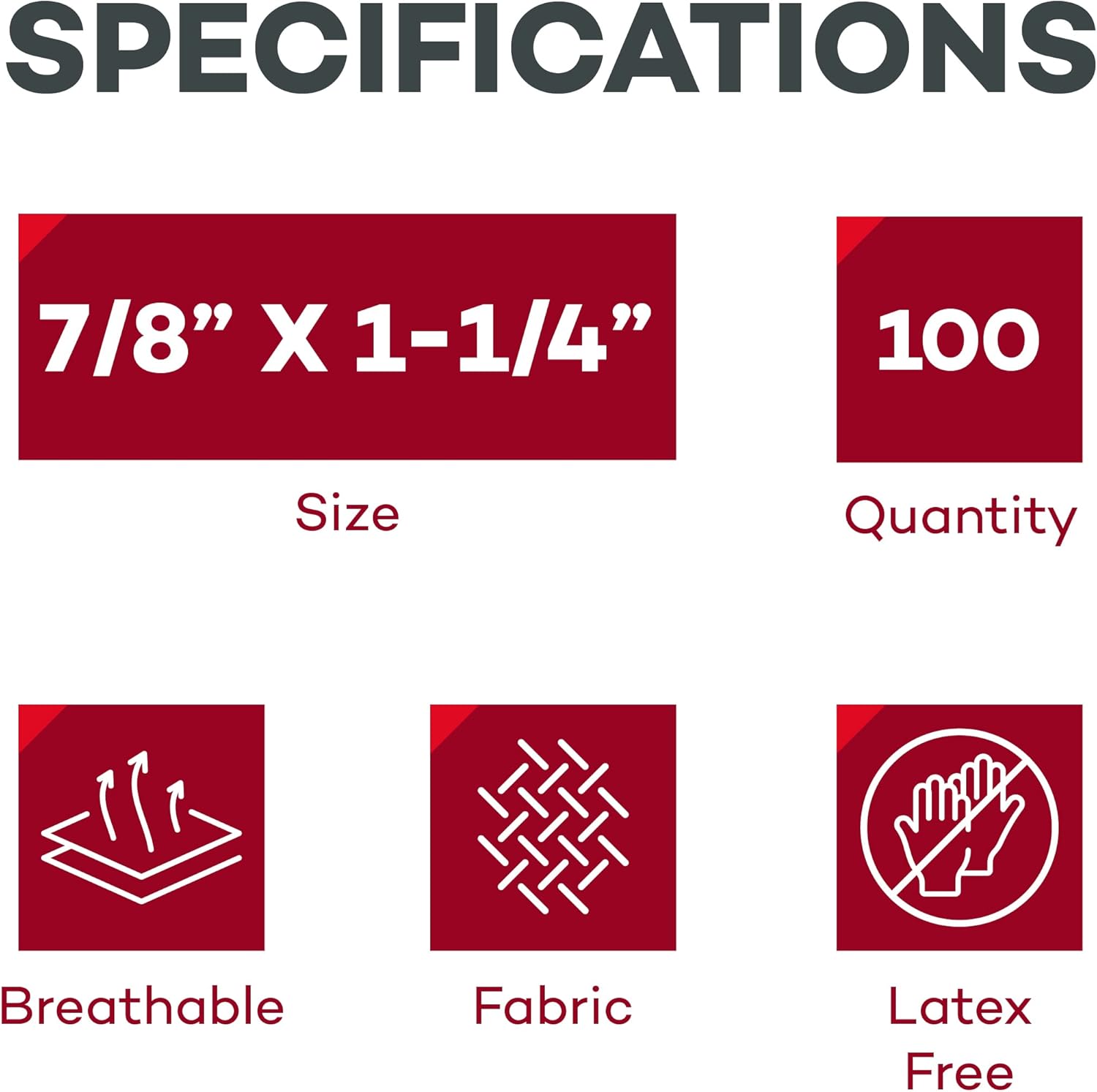 Dealmed Fabric Oval Flexible Adhesive Bandages – 100 Count (1 Pack) Bandages with Non-Stick Square Pad, Latex Free, Wound Care for First Aid Kit, 7/8″ x 1 1/4″