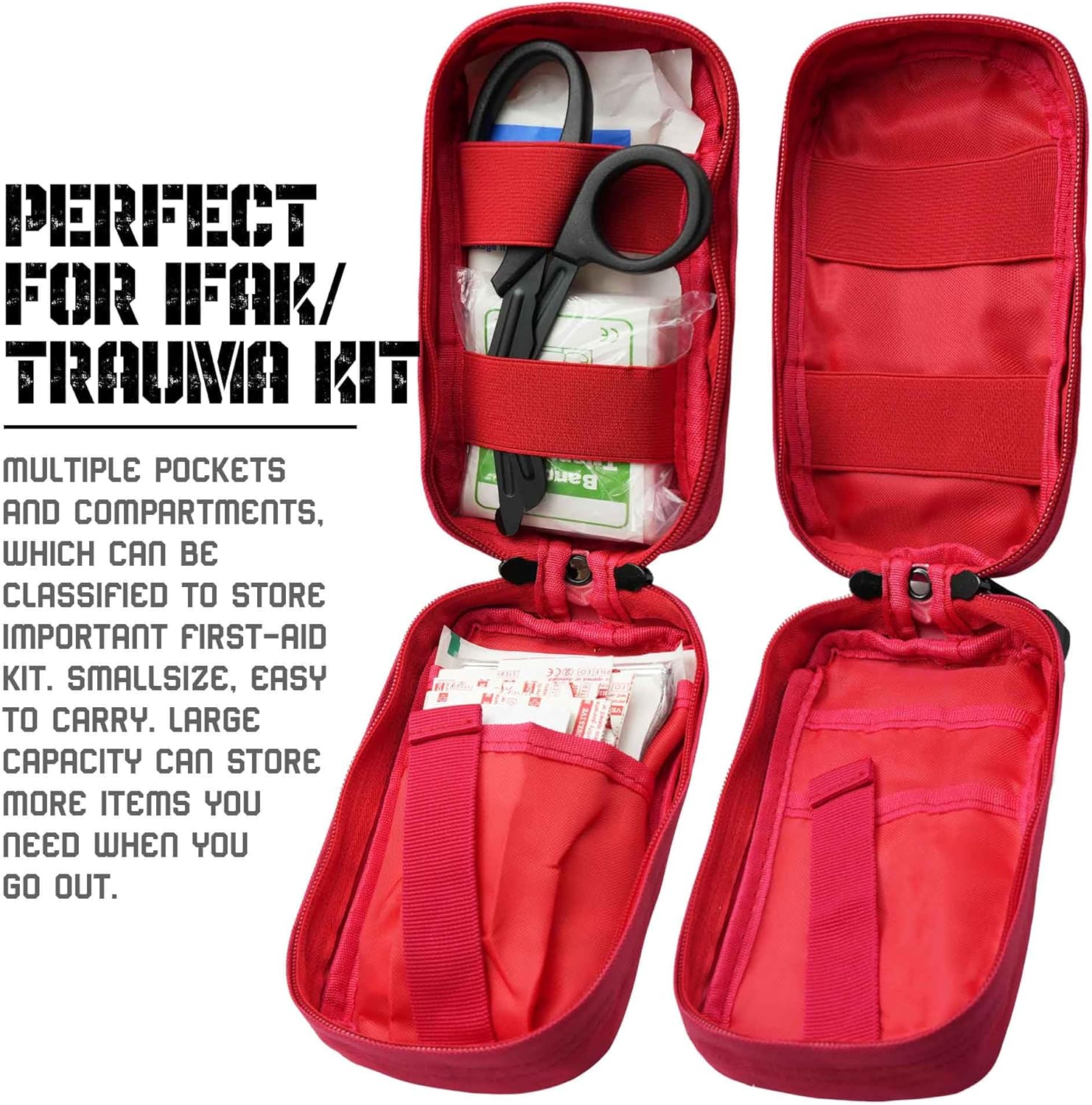 Small Size But Large Capacity: Our molle ifak pouch size: 7.5*6*2.4 inch; multiple pockets and compartments; which can be classified to store important first-aid kit. Small size; easy to carry. Large capacity can store more items you need when you go out. Our EMT molle pouches is a good assistant for your camping; mountain climbing and traveling