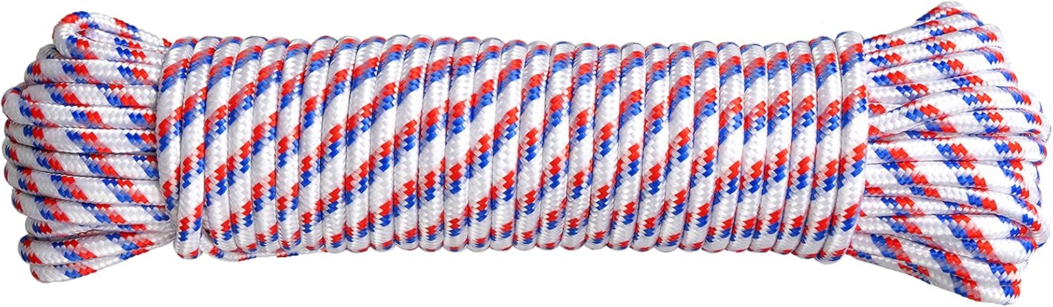 Material polypropylene Rope Configuration braided Rope Diameter approx. 1/4″ (accurate measurement is 6.5 mm) Product Length approx. 100 ft. (accurate measurement is 30 meters) Working Load Limit 130 lbs. Color white, black, yellow, red, blue