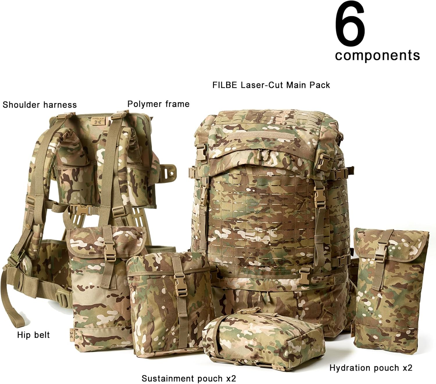 Fully Modular Rucksack System for Multi-Mission Use – This 82L(5000 cu.in) military ruck includes a main backpack, modular waist belt, and an external ABS frame, allowing customized loadouts for different missions.