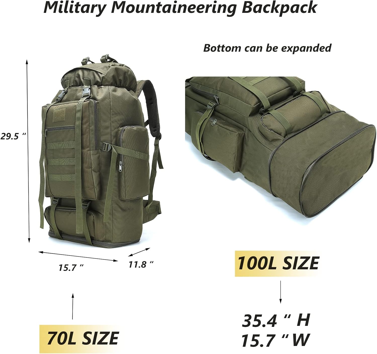【Comfortable Backpack】: Military mountaineering backpack features sweat-absorbing and breathable sponge shoulder straps with airflow channels to keep your back cool and dry. This molle mountaineering backpack features 2cm thick cellular foam padding to relieve shoulder pressure.