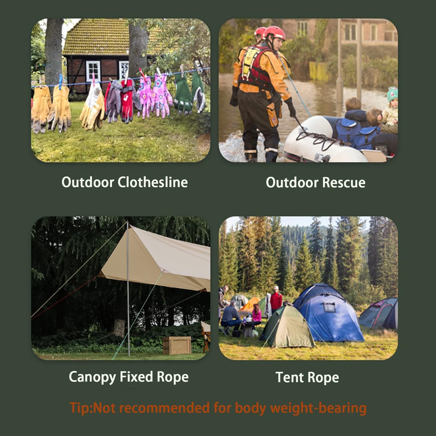 Multipurpose: It is used as a tent cord to set up tents, safely secure hammock or hang heavy items such as bikes and kayaks in your garage or basement. A Must-Have for Camping, Hiking, Fishing, Boating, Kayaking, other outdoor activities and sports