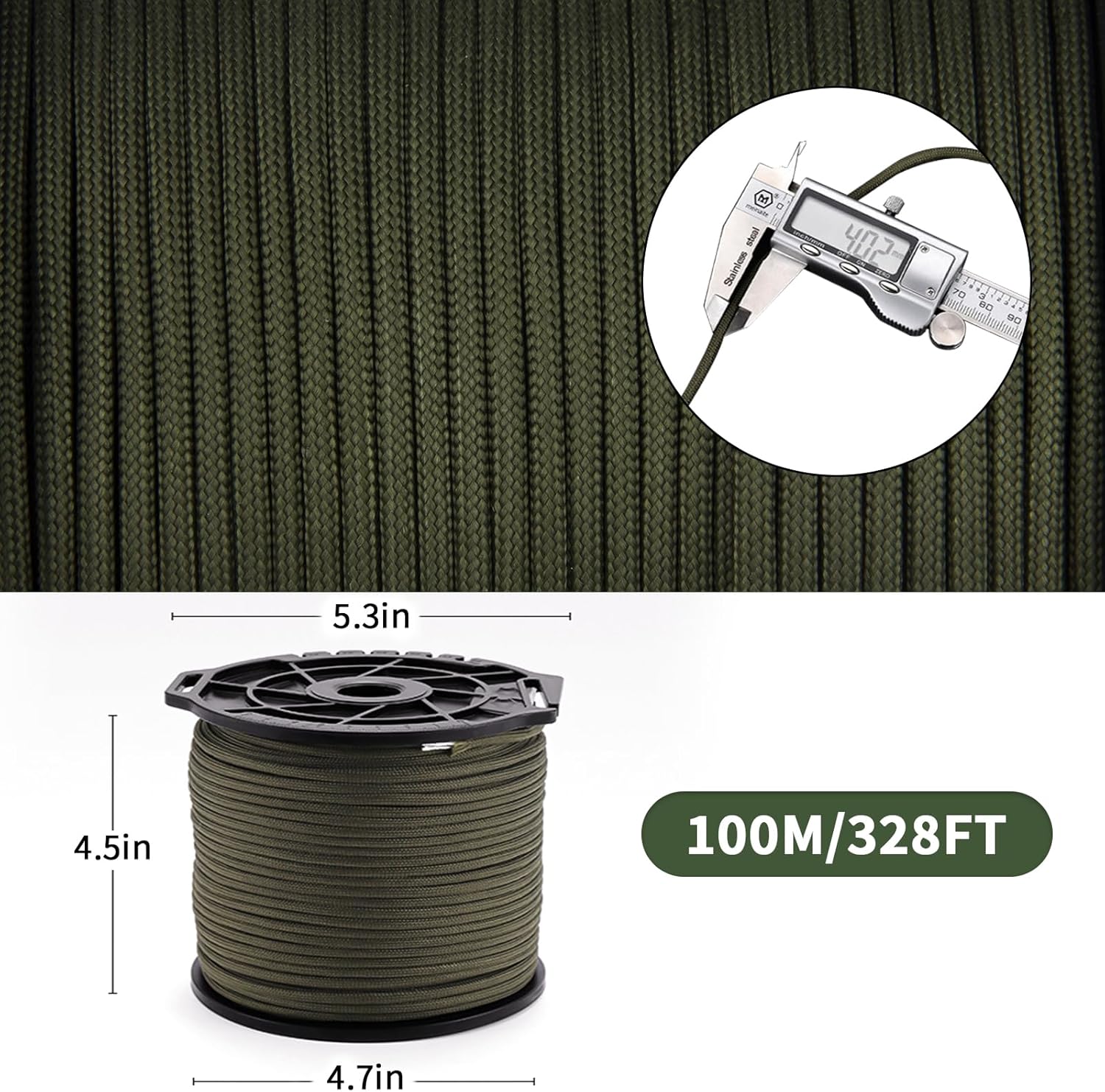 Paracord Rope: Length:100M/328FT, Thickness: 5/32-inches (4mm), 9 Strand Parachute Spool Cord