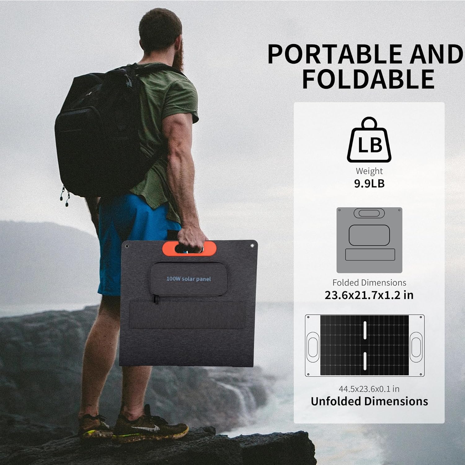 [Lightweight, Foldable, and Compact] The folding design effectively prevents battery explosion and ensures long-term use. The back of the solar panel features a self-standing bracket that can be adjusted from 45° to 90° for easy use. It’s convenient to carry and stores neatly. It’s ideal for outdoor activities like camping, hiking, fishing, and car camping, as well as emergencies like earthquakes.