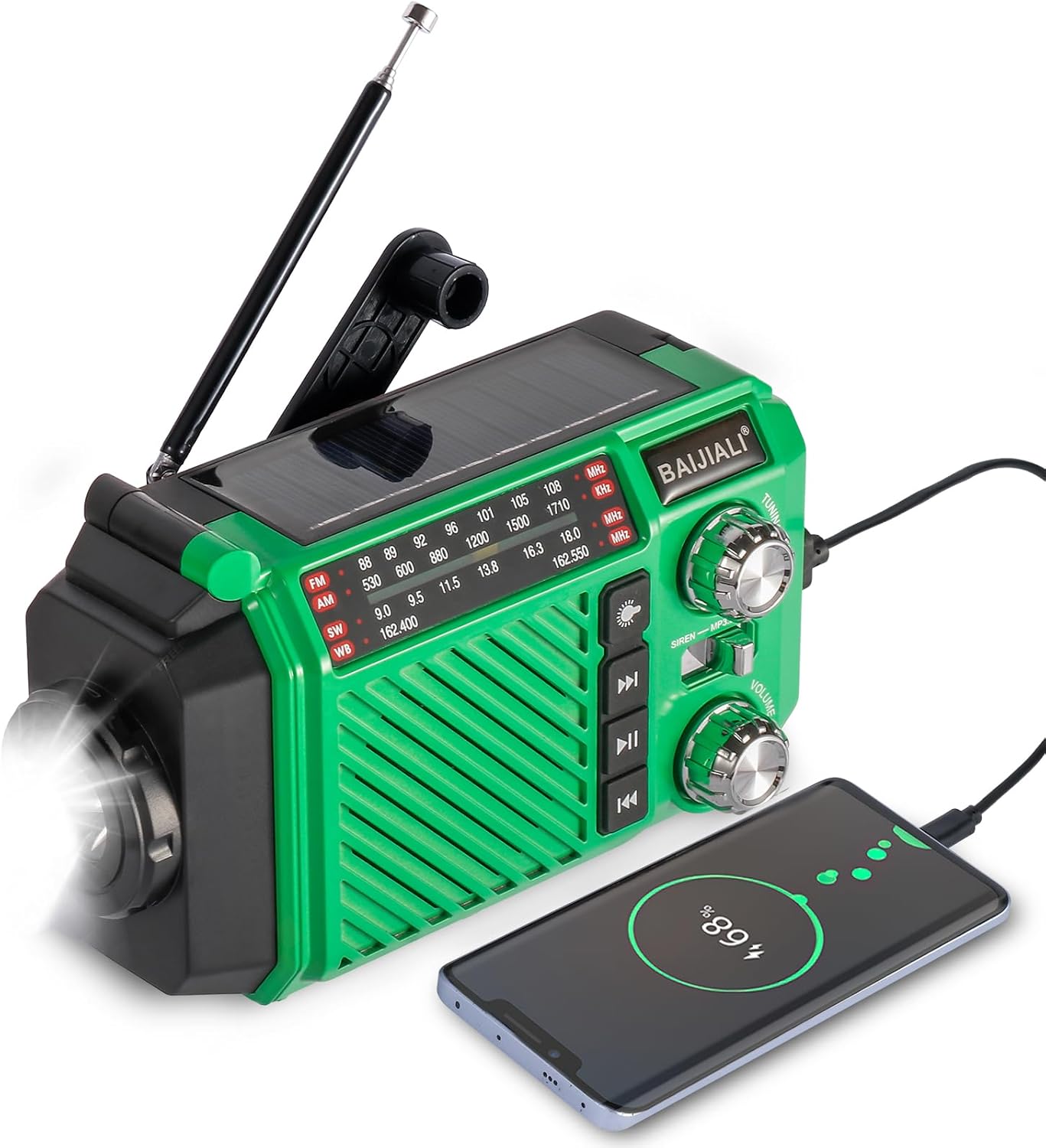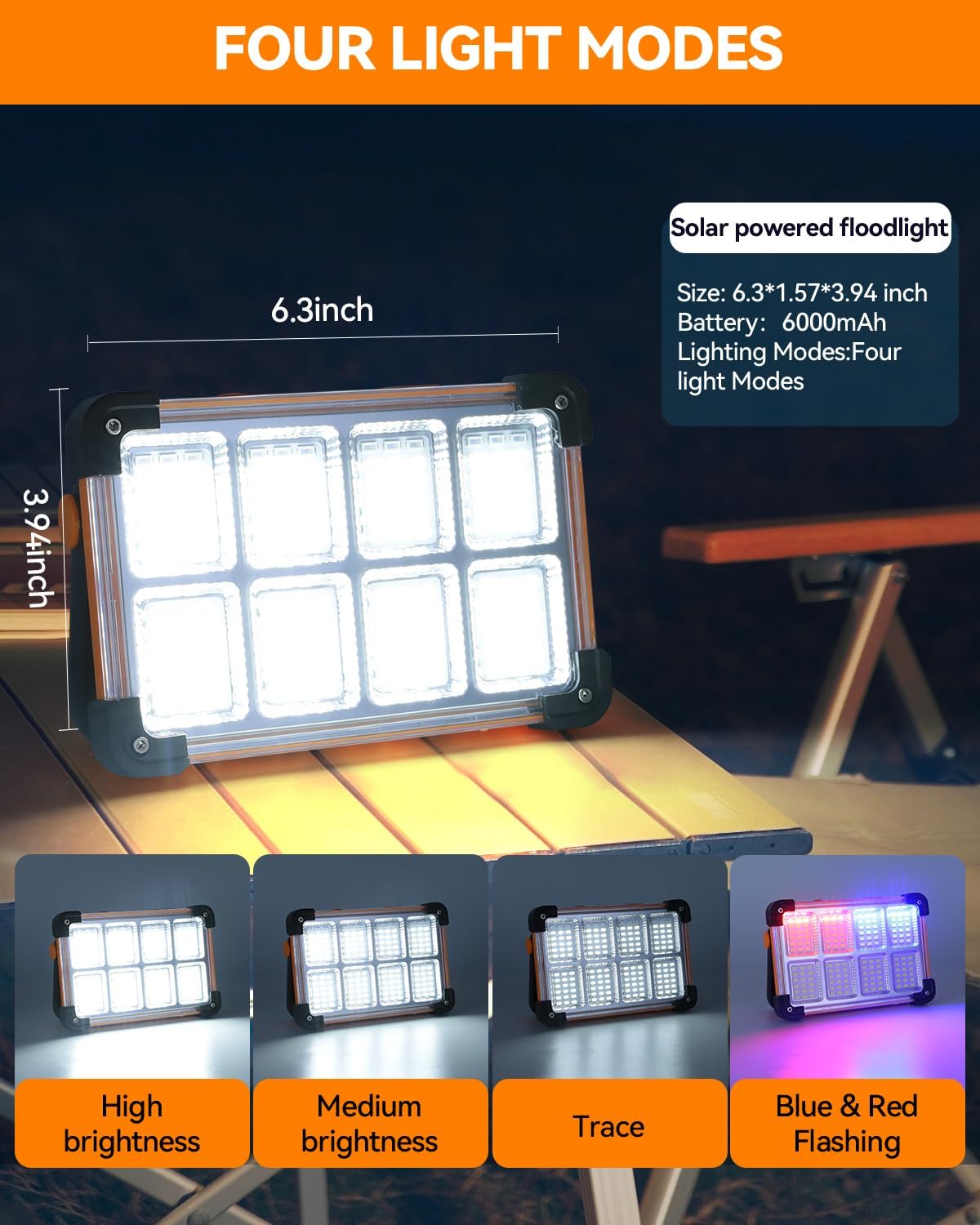 【Versatile Dual Charging & Emergency Power Bank】Beyond powerful lighting, this portable work light serves as a reliable emergency power source. It features a USB output port to charge your phones, tablets, or other devices. Additionally, the integrated solar panel on the back offers an efficient 22% solar energy conversion rate, providing a sustainable backup charging option in outdoor or urgent situations.