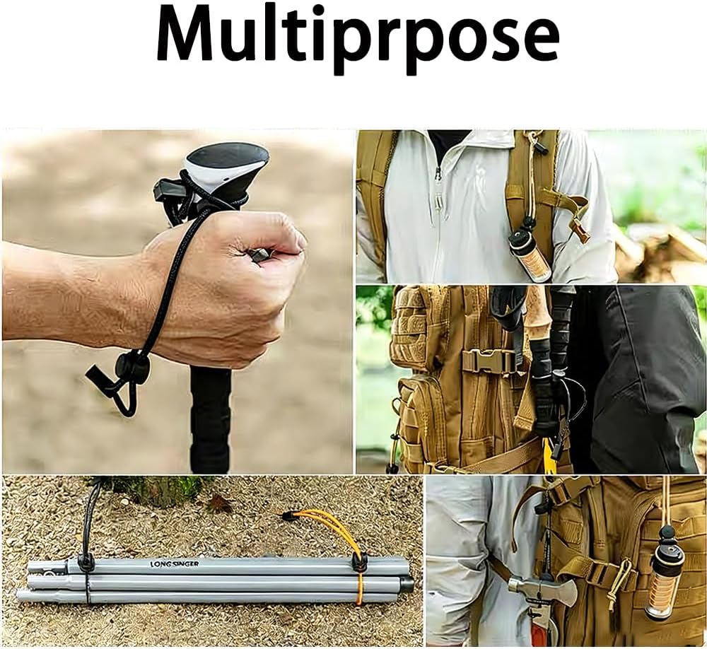 【Elastic & Reusable Lanyard】: Crafted from highly elastic and durable rubber, this reusable Hiking Pole Holder is compact and built for long-lasting performance. It reliably secures items like trekking poles and water bottles during all your outdoor adventures.
