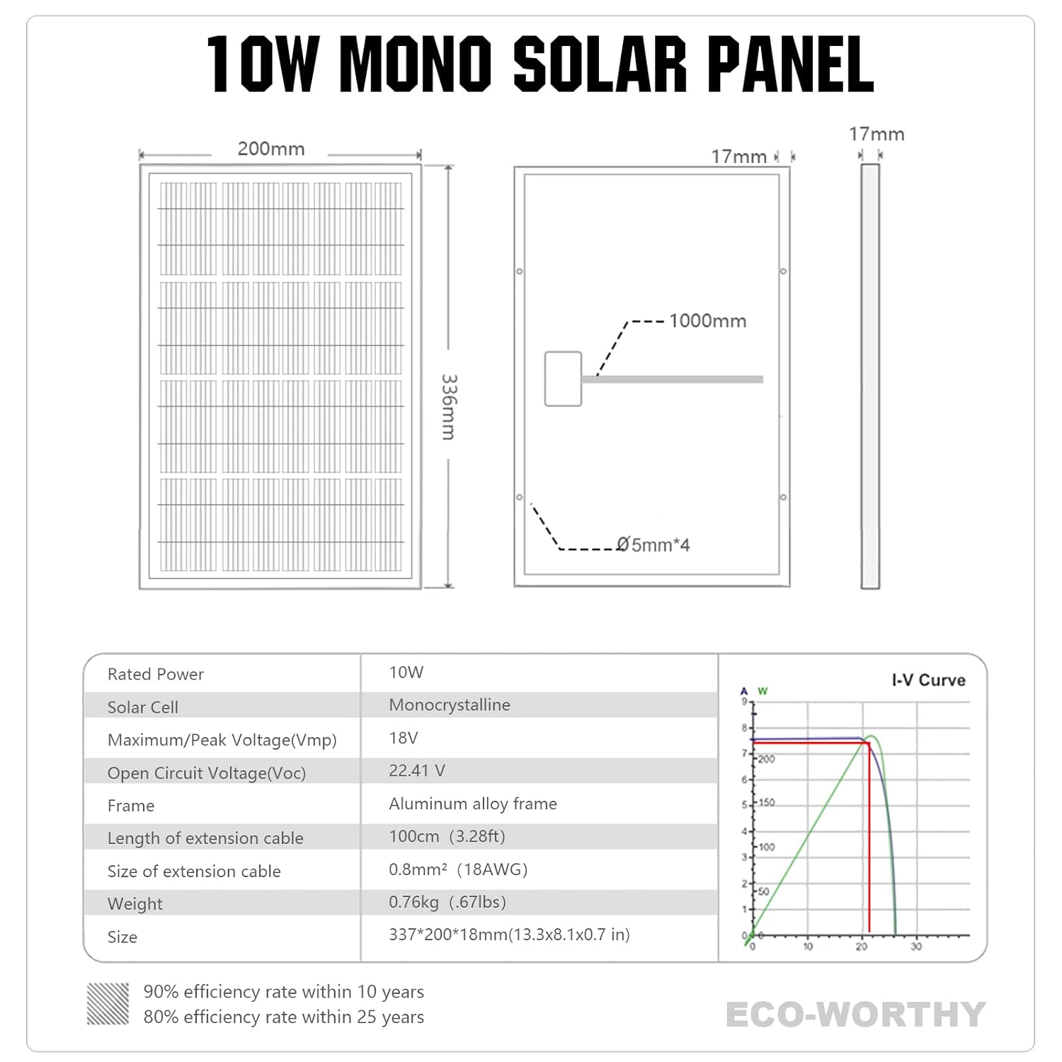 Portable and Convenient: Compact size (13.3×8.1×0.7 inches) and 3.28 ft extension cable make it easy to carry and connect to charge controllers or 12 V loads