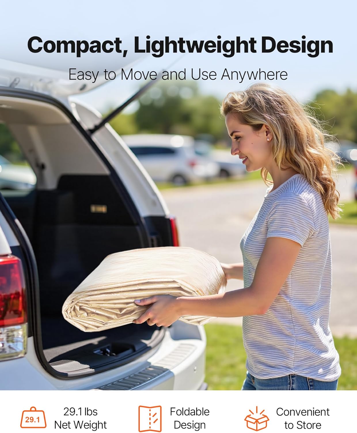 Durable Construction: Made with 210g PE woven top (180g PE sidewalls) and 16×16 weave, the portable garage tarp is stronger than regular tarp. Double heat-sealed seams and grommets ensure a tight, secure fit that resists tearing and leaking.