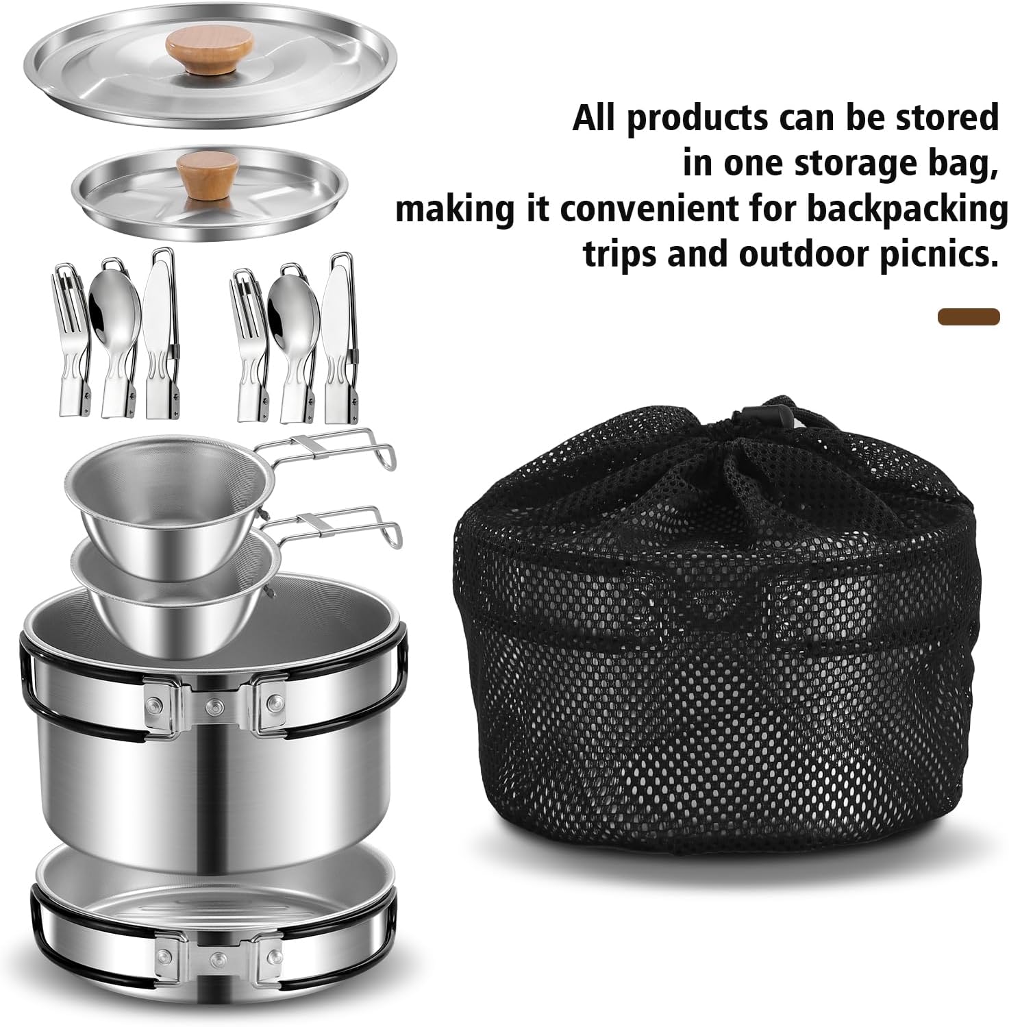 【Durable & Easy to Clean】Built to withstand rugged outdoor use, the sturdy stainless steel construction offers long-lasting durability. Stains and food residues wipe off easily without tedious scrubbing—saving you time for more adventure.