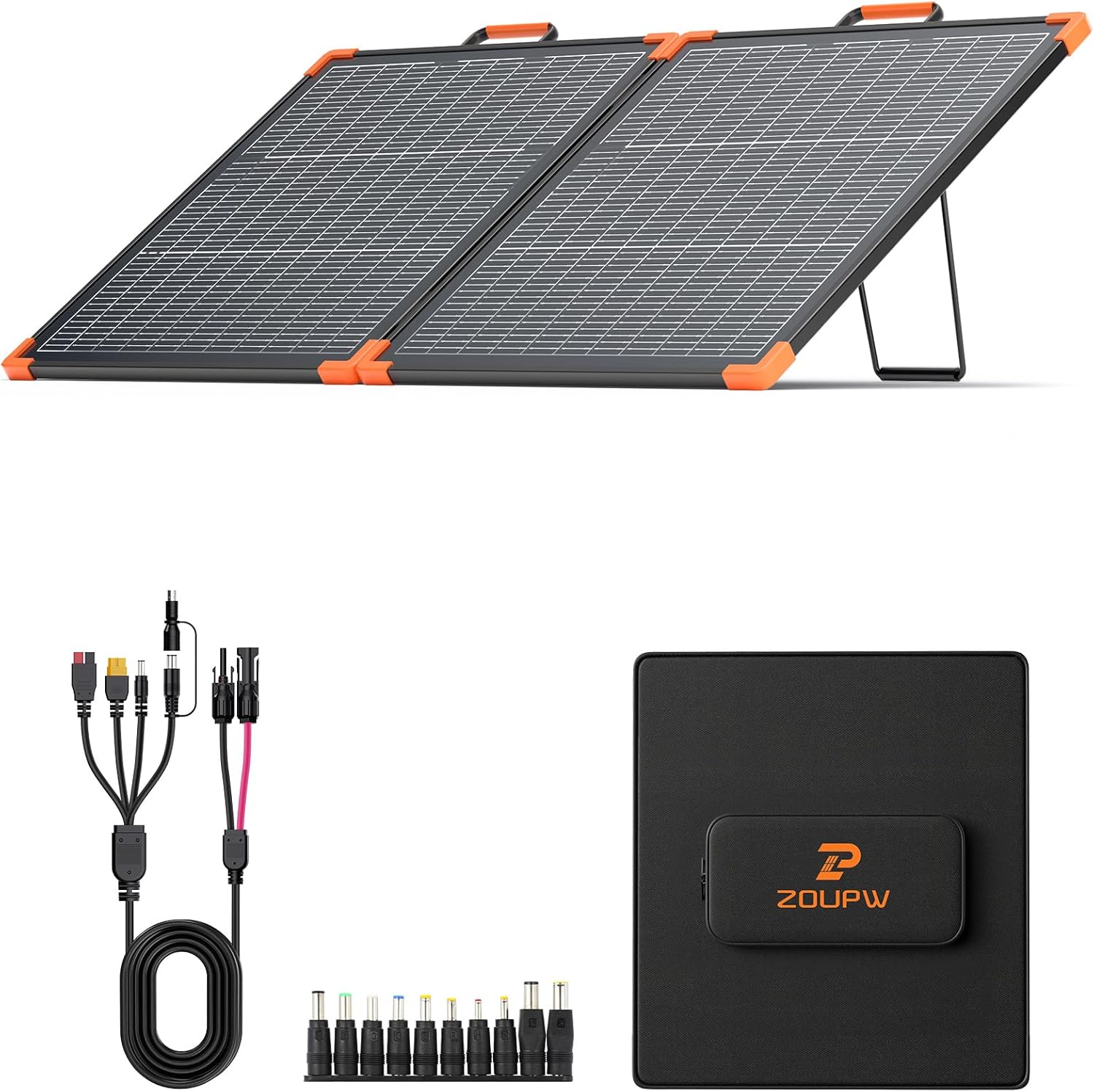 【Universal Connectivity】 Perfect for your RV essentials, the ZOUPW 110W portable panel includes a 5-in-1 cable (DC8020, DC7909, DC5521, XT-60, Anderson). It connects directly to virtually all portable power stations on the market without the need for extra adapters.