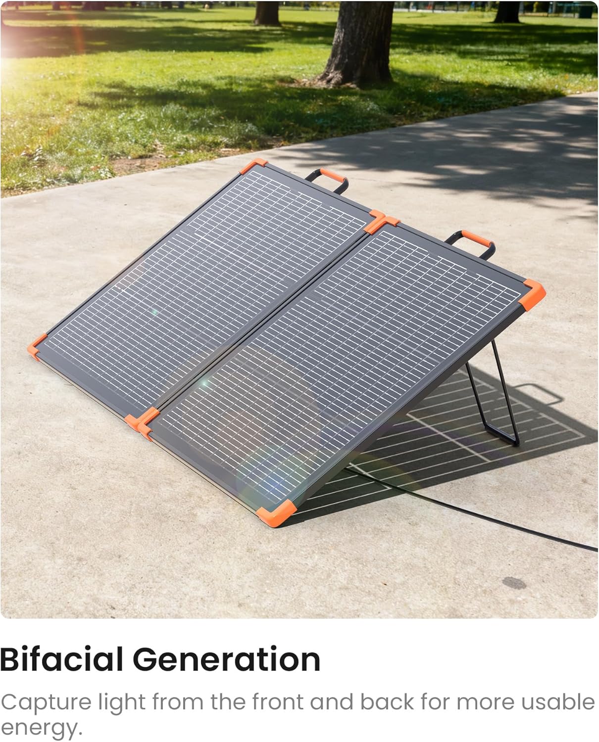 【What You Get】 This complete package includes the ZOUPW 110W bifacial solar panel × 1, a stylish storage bag × 1, user manual × 1, 10ft 5-in-1 connector cable × 1, and a 10-in-1 DC adapter set × 1. We back our products with a 36-month warranty and 7*24 friendly customer service.