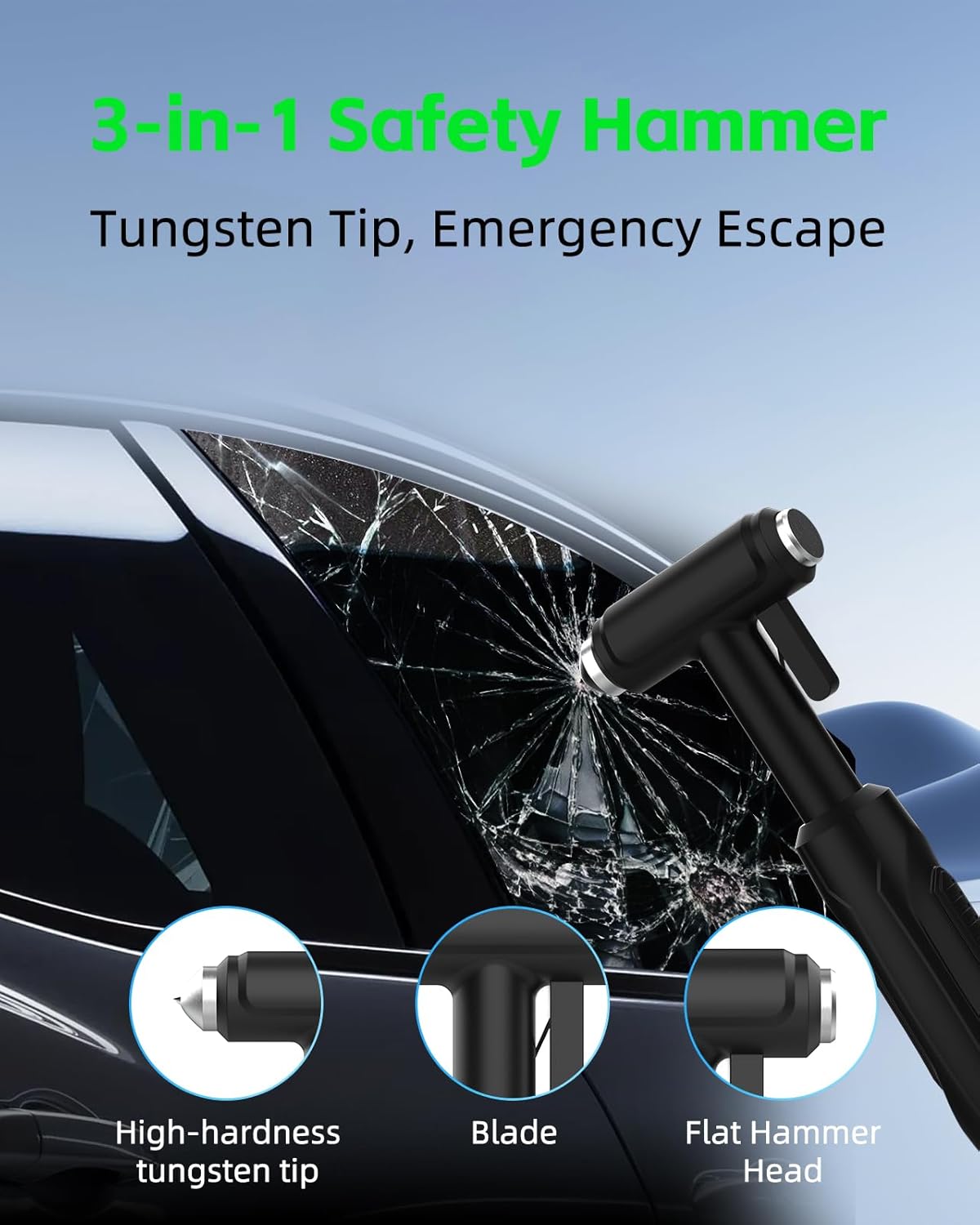 【3-in-1 High-Carbon Steel Safety Hammer for Roadside Emergencies】 – Versatile Tool: Tungsten steel tip for breaking windows, blade for cutting seatbelts in emergencies, and flat head for everyday tasks. Compact and lightweight, it’s a must-have for your roadside emergency car kit.