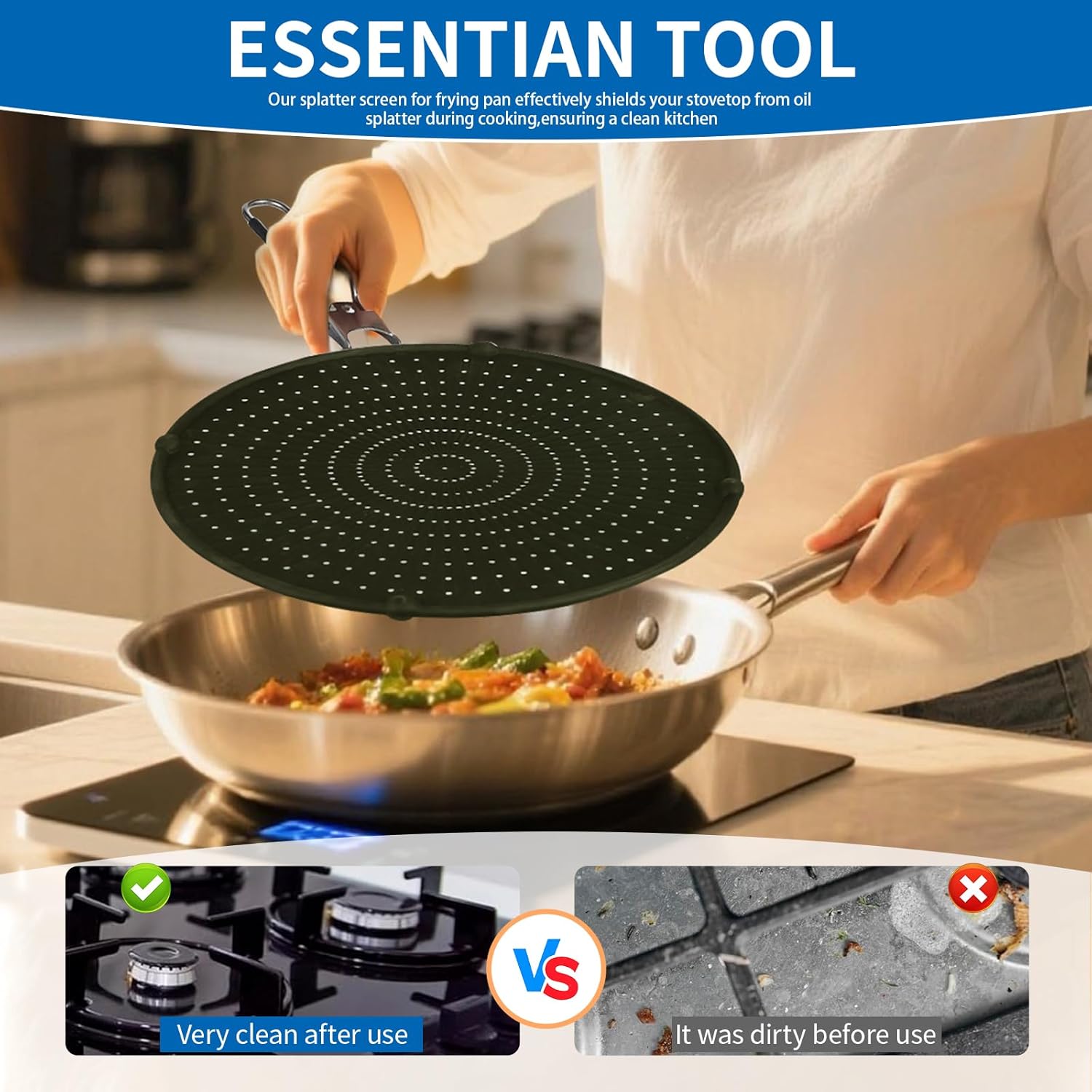 It’s easy to clean,keeping your kitchen tidy by preventing oil splatters.