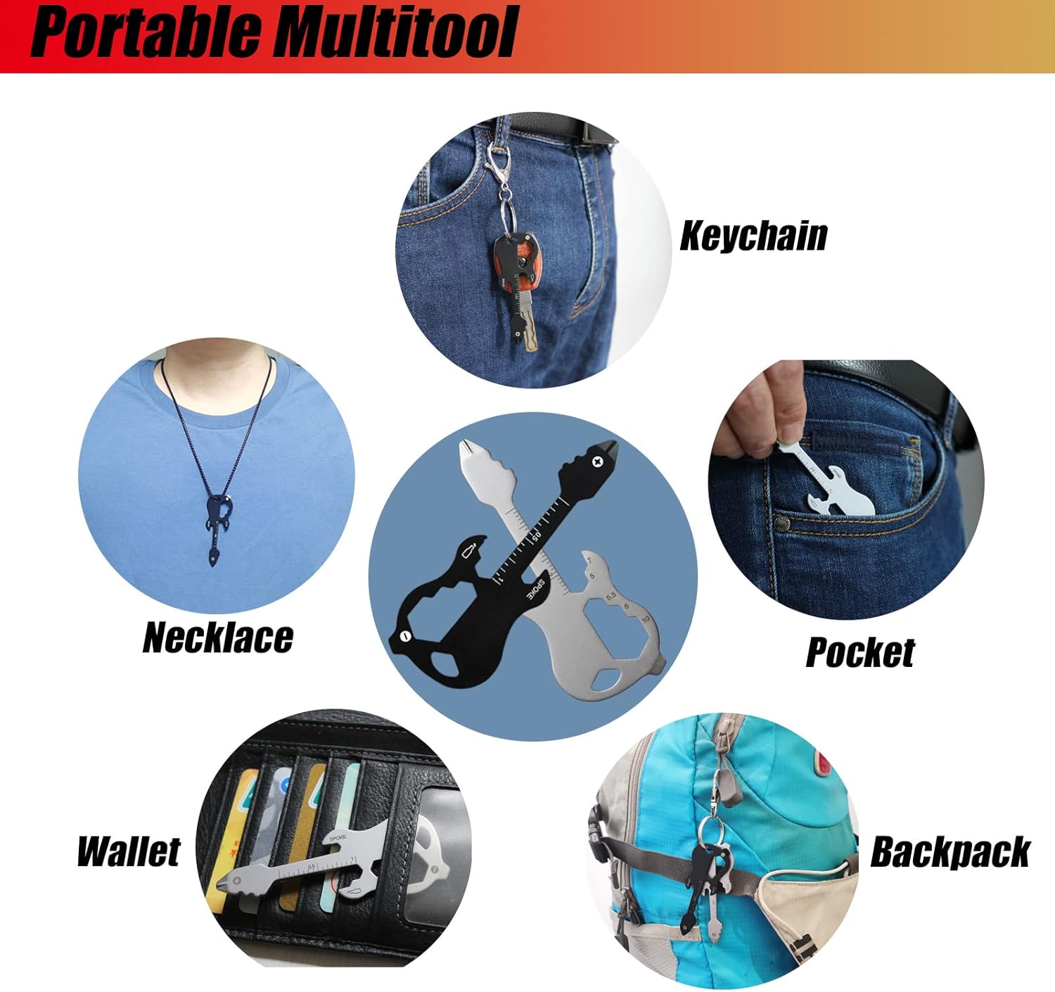 Guitar-shaped design, fashionable and elegant, when you have this keychain multi-tool, you are the most shining. perfect for minimalists and music lovers.