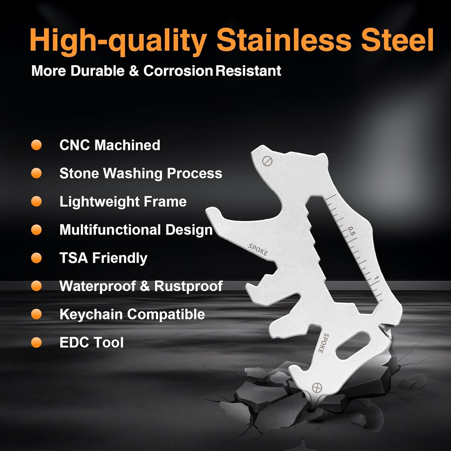 This bike multitool features phillips & flathead screwdrivers, Lanyard Hole, spoke & hex Wrench, bottle opener, ruler, etc. for removing nails, measuring, bike repairing, suitable for outdoors, hiking, camping, climbing, survival, and home improvement.