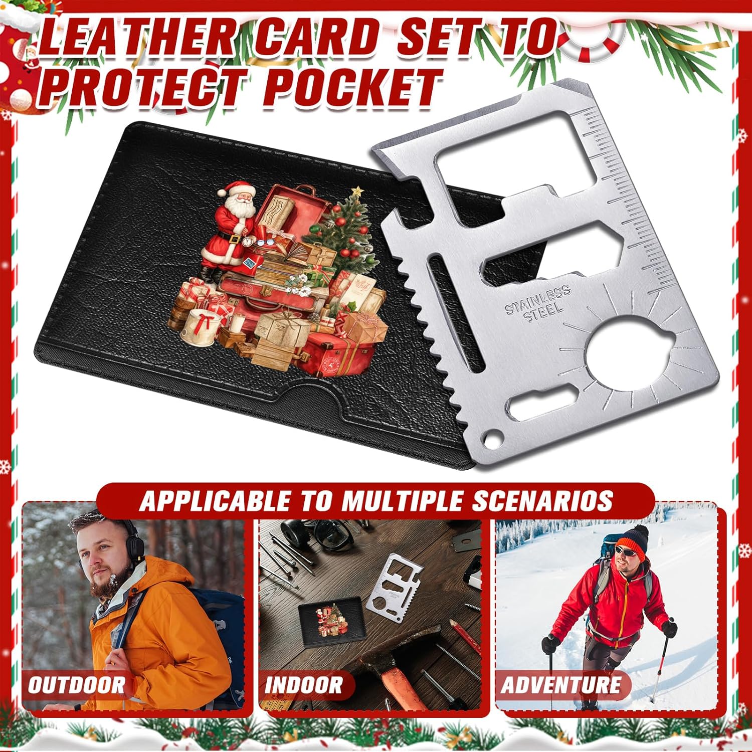Festive Leather Gift Set: each men’s Stocking Stuffers comes in a leather case with vintage Christmas designs red green and white; The blend of practicality and holiday charm, making it an unforgettable gift that’s both useful and decorative