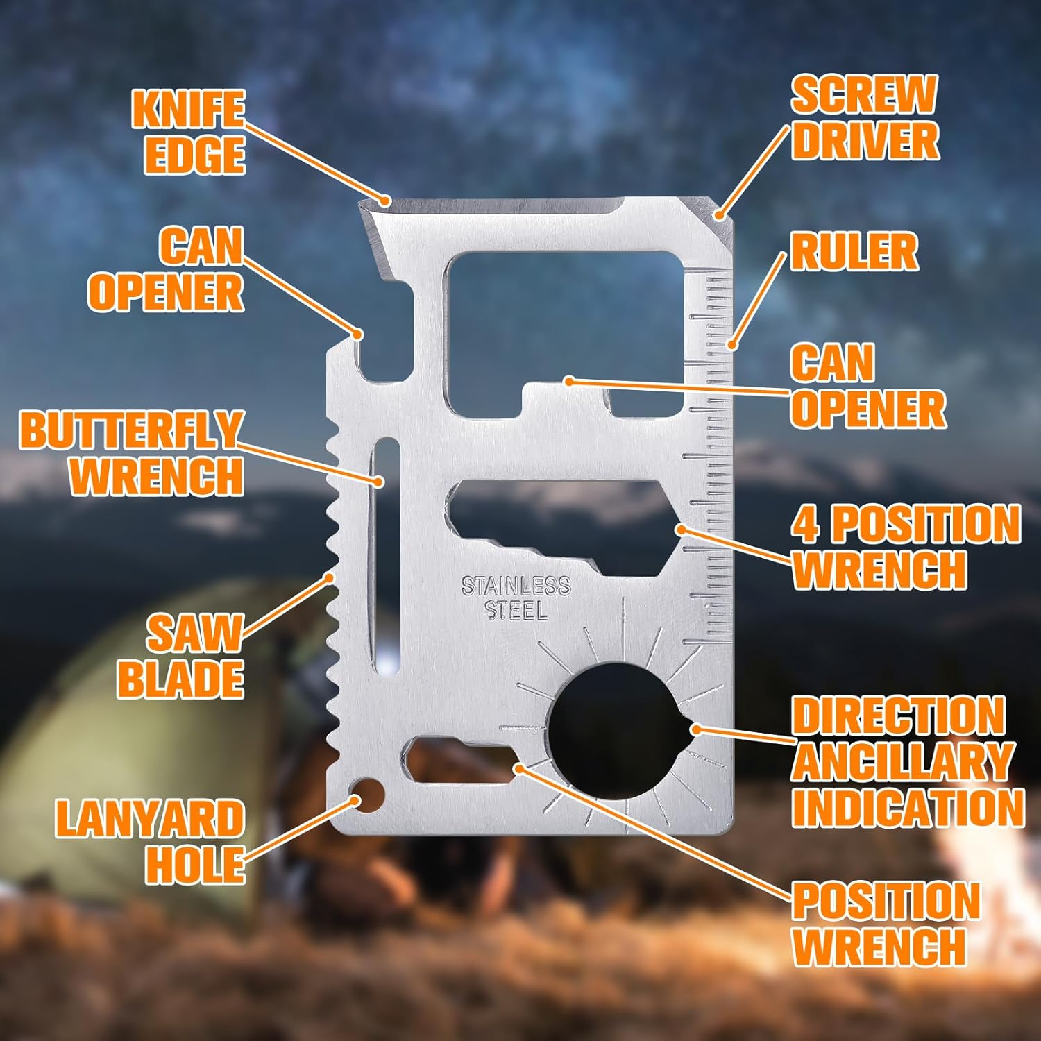 Portable Survival Companion: slip this credit card sized multi tool 2.7 x 1.8 inches/ 6.86 x 4.57 cm effortlessly into your wallet or pocket; Weighing mere ounces, it’s the lightweight emergency tool for camping, travel, or everyday carry always ready when adventure calls