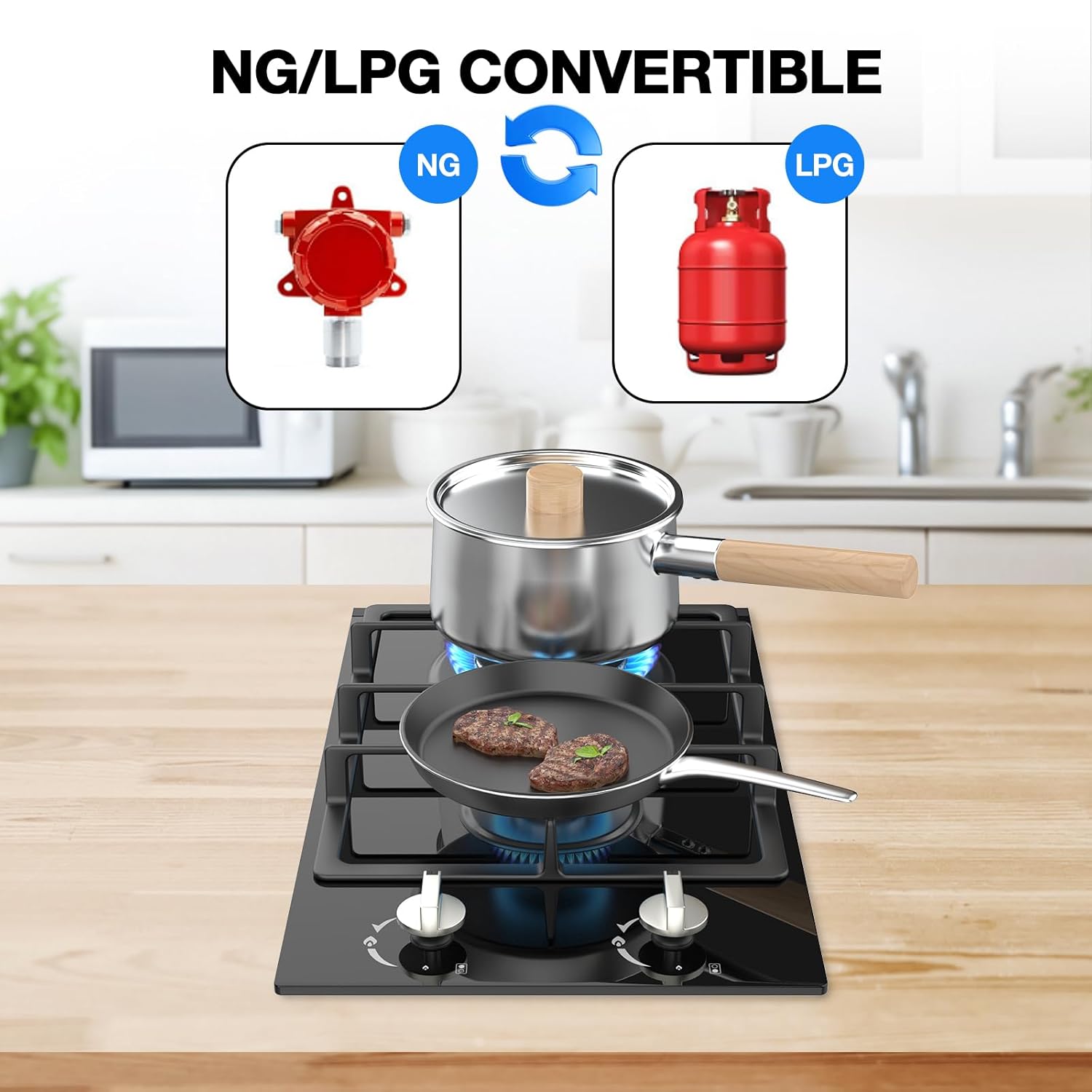 NG/LPG Two Gas Conversion: The Nafewin portable gas cooktop initial setup is designed for natural gas, The conversion process takes only a few minutes to complete. The automatic electric pulse ignition uses a 110-120V AC power, providing faster and more stable ignition speed. This gas stovetop is preinstalled for NG, extra LPG Nozzles and conversion tool included, can be changed to meet your needs. And our product page has a video of the installation operation, you can click in to watch how to install