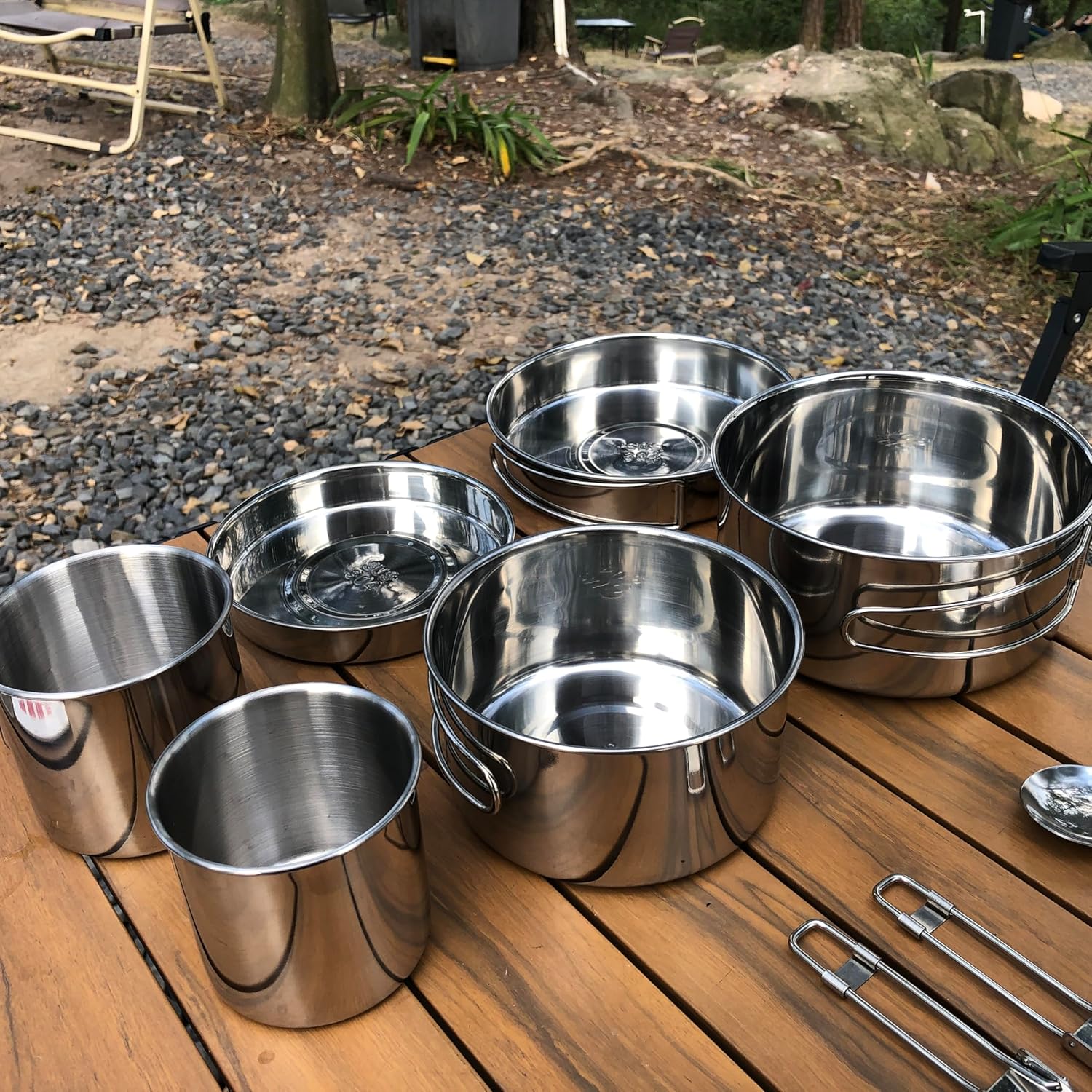 π₯Ύ Camping Cookware Mess Kit Set 304 Stainless Steel 12-Piece Lightweight Backpacking Cooking Set Outdoor Cook Gear for Family Hiking, Picnic(Pot, Frying Pan, Bowl, Plate, Spoon, Fork) β Review, Key Features & Current Price