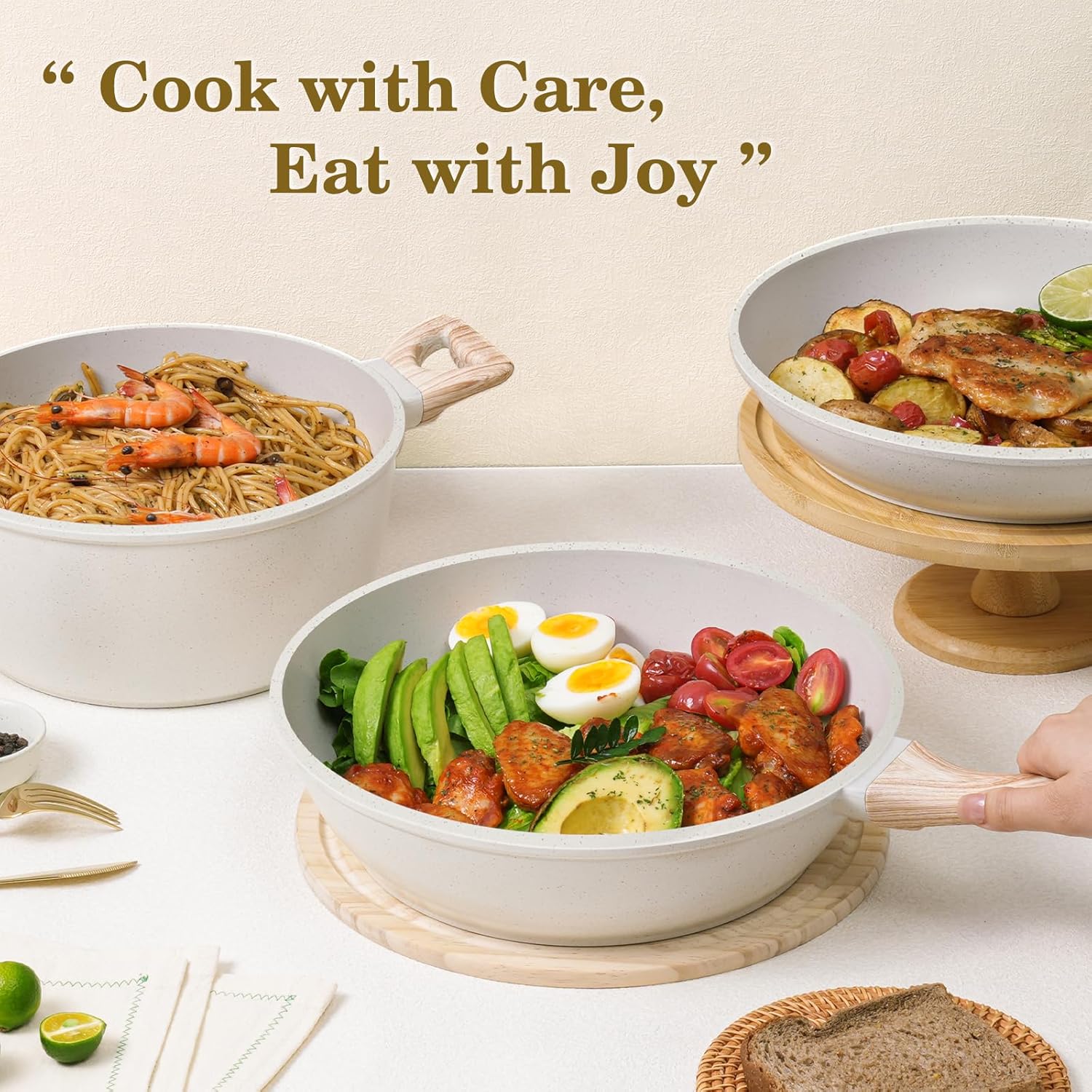 All-in-One Cookware Set – From frying and boiling to simmering and sautéing, this nonstick pots set includes frying pan, saute pan, casserole, milk pots and pan protectors. Simplify your kitchen with this complete pots and pans set—thoughtfully curated to cover all your daily cooking needs.