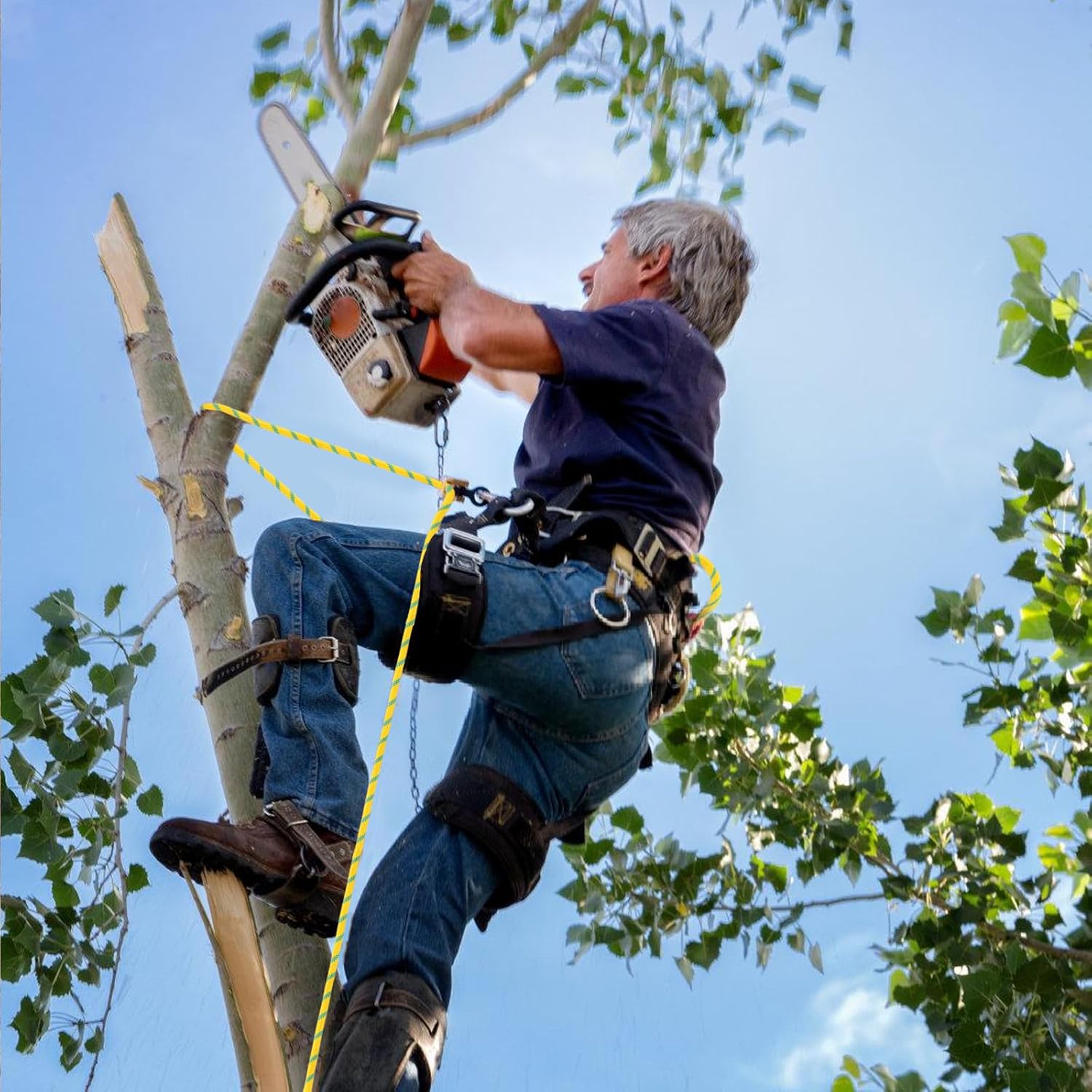 High Quality-Arborist rope made of high-quality polyester It is inherently impervious to degradation from prolonged exposure to the elements, including UV radiation, chemicals, moisture, and abrasive surfaces