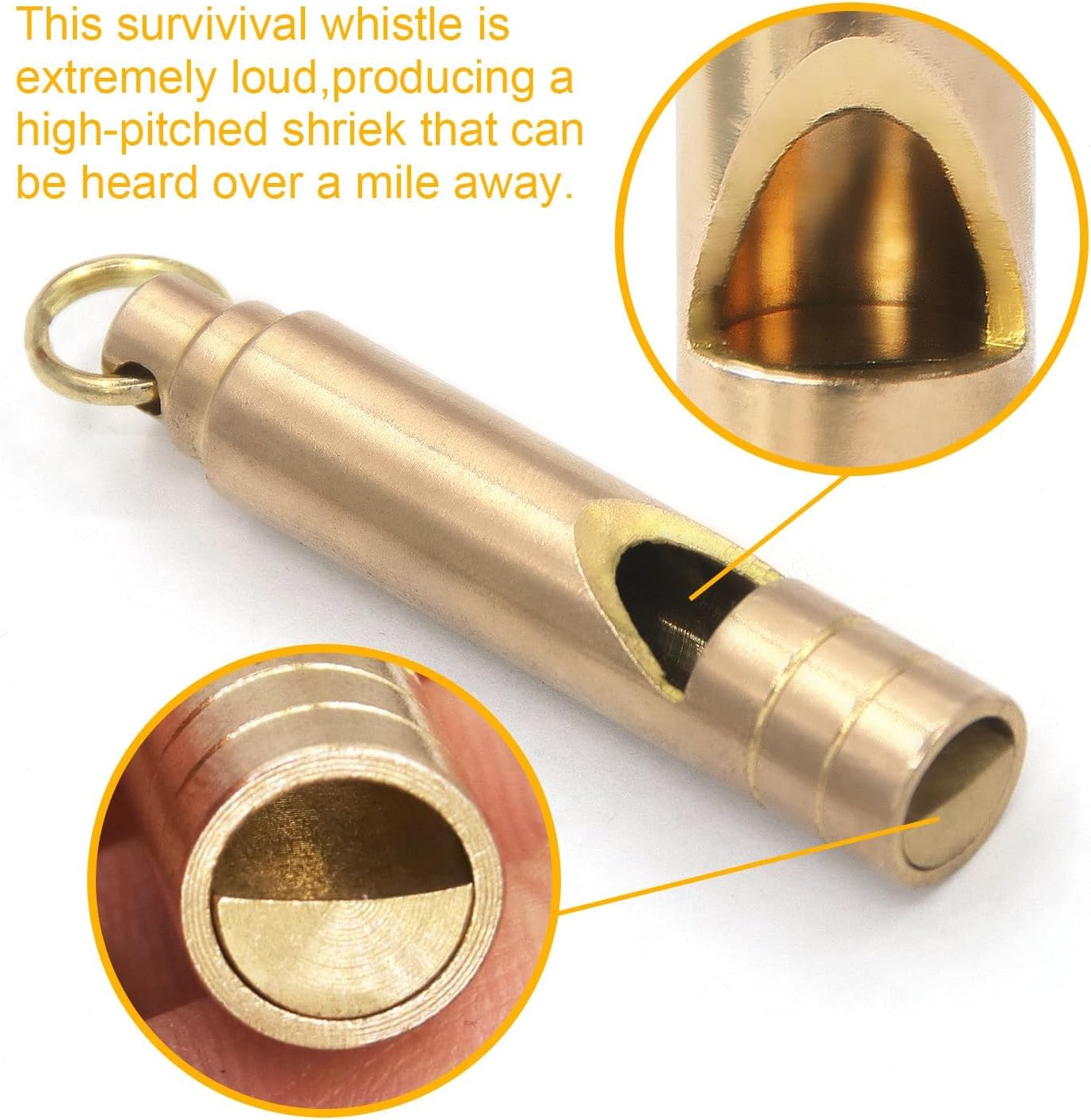 Premium and durable brass and metal construction: Made of high-quality metal whistle material, it comes with a sturdy brass key chain ring. Our brass keyrings ensure a long service life, are durable, and can withstand harsh conditions, making them essential survival gear.