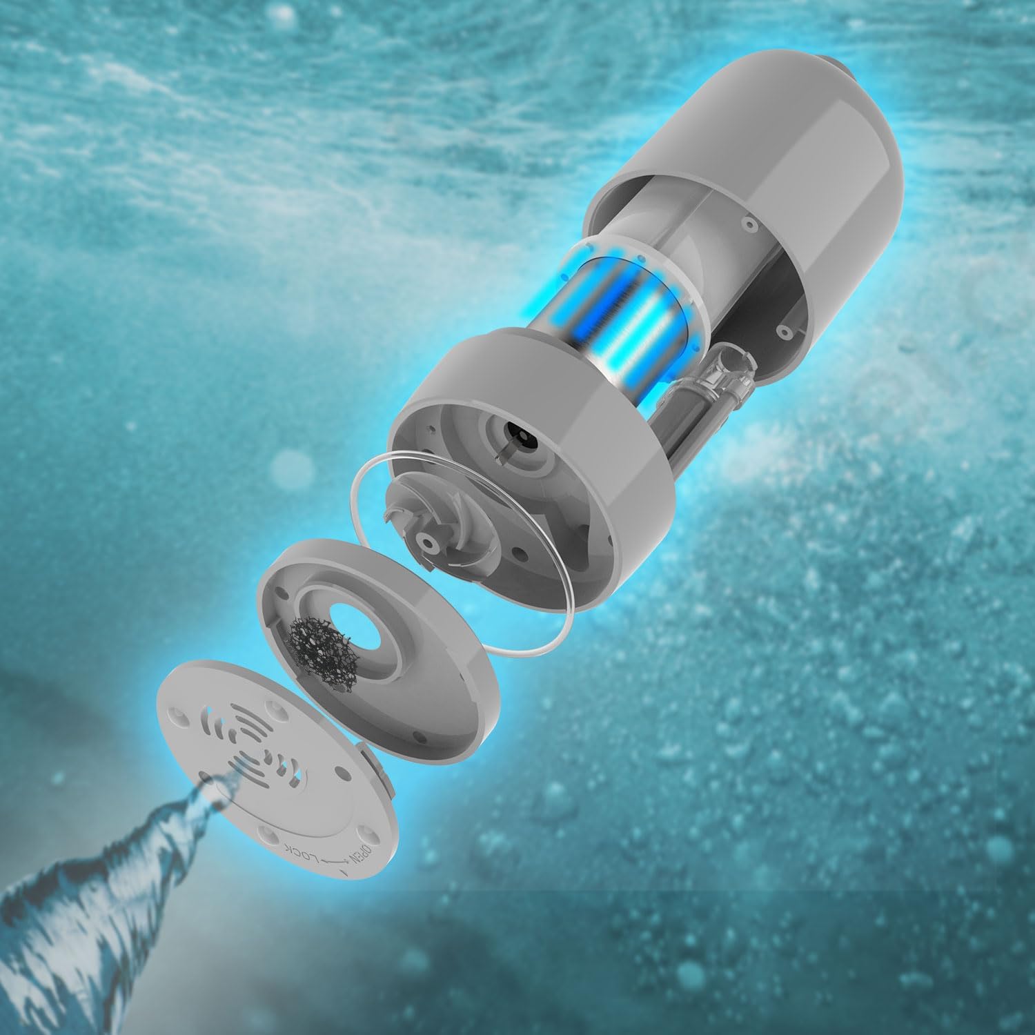 【Instant Setup, Zero Hassle】One-Touch Operation – press the switch for instant 1.59 GAL (6 L/min) gentle flow.Compact & Universal Fit – 2.1-inch diameter base fits buckets, water bags, even backpacks.Leakproof Quick-Connect Hoses – no tools needed. Detach the bottom cover for easy sand/debris cleaning.