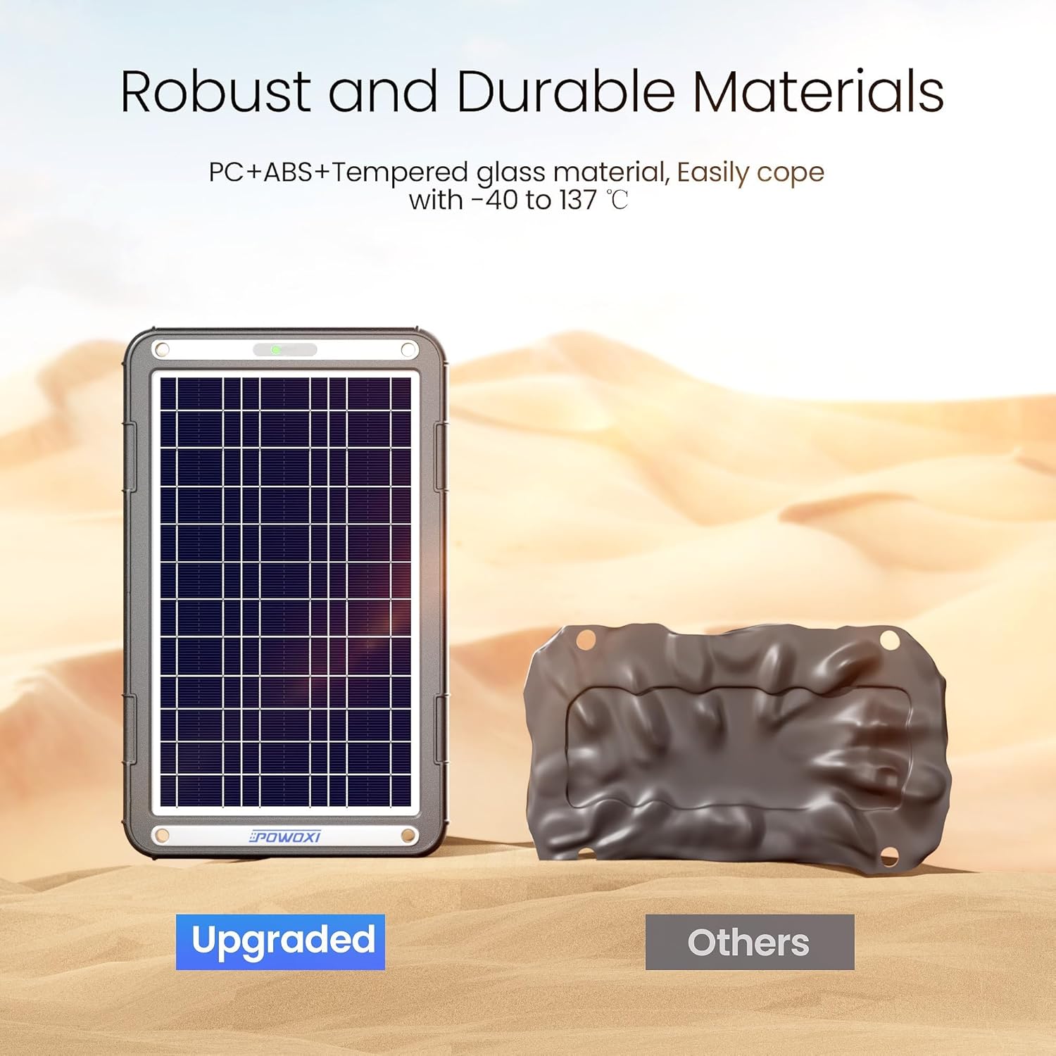 Robust and Long-lasting Materials: Made with PC+ABS+Tempered glass, these solar panels withstand -40 to 137°C and are IP65 waterproof, enduring heavy rain, ABS+PC frames are stronger than flexible panels and won’t damage car paint like aluminum frames