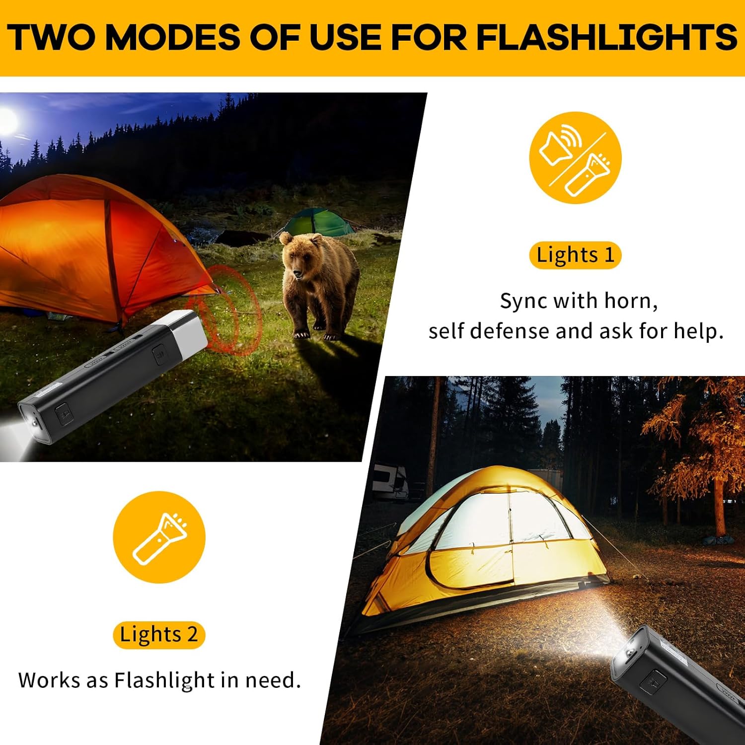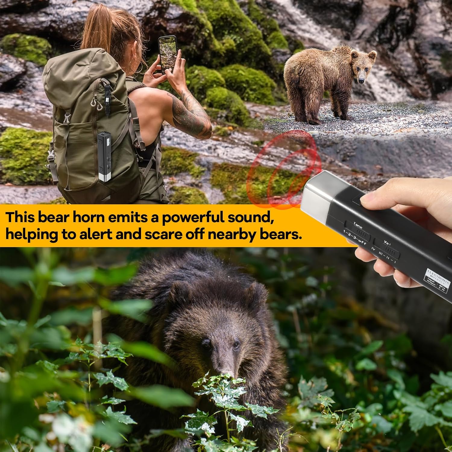 130dB Bear Horn with Flashlight: This electronic bear horn to scare bears produces a loud, clear, and powerful 130dB sound that carries over a wide area, effectively deterring bears and drawing attention in emergencies. The electric bear horn also features a built-in LED light, providing reliable illumination for outdoor adventures.
