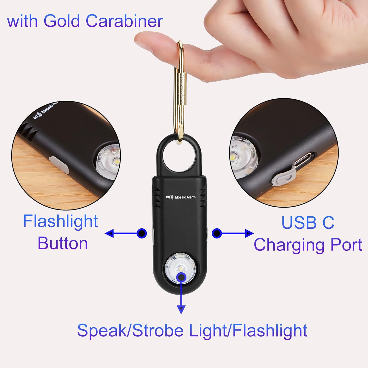 135dB Non Slip Grip Personal Alarm For Women Built-in Bright Flashlight