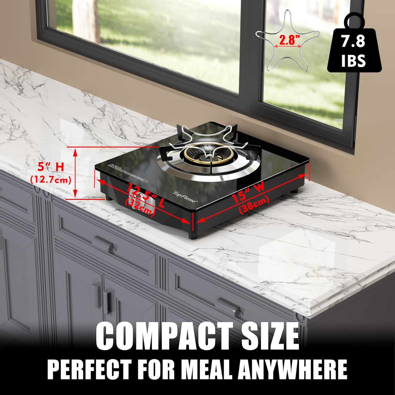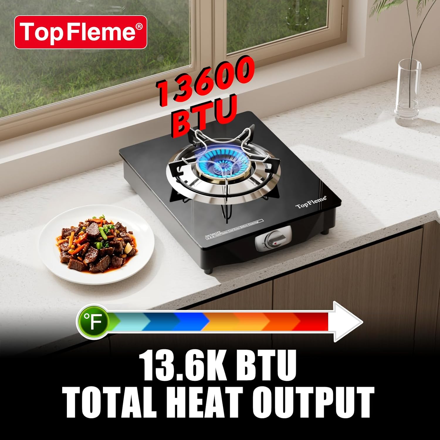 HIGH EFFICIENCY, LOWER GAS CONSUMPTION: This 1 burner propane stove features two 13,600 BTU burners. Pure blue rotating flame technology ensures concentrated, stable heat with 30% better wind resistance (vs. traditional straight-line flames). The open burner with 360° oxygen intake promotes complete combustion for consistent performance and energy savings, even in outdoor conditions!