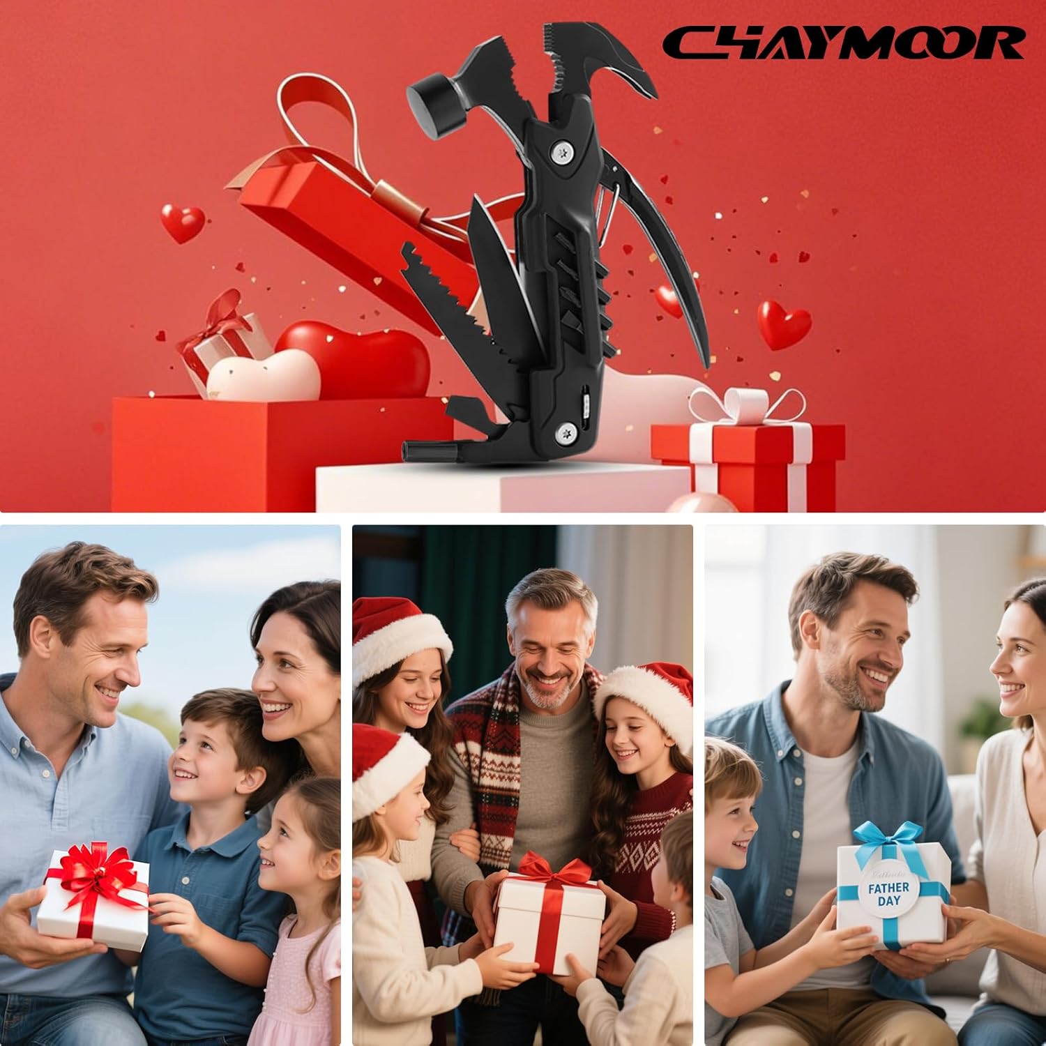 ✅【Men’s Practical Multitool 】Anti-slip handle defies sweat and mud. Instantly switch between wrench, hammer, wire cutter, and screwdriver – no more digging through toolboxes.