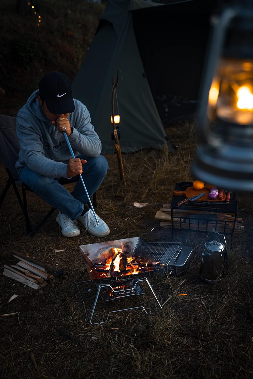 ✅[Dual-function Camping Fire Pit & BBQ Grill ] Seamlessly converts from a wood burning fire pit to a charcoal BBQ grill. Enjoy a warm, contained campfire or a delicious outdoor meal with one versatile, space-saving unit.