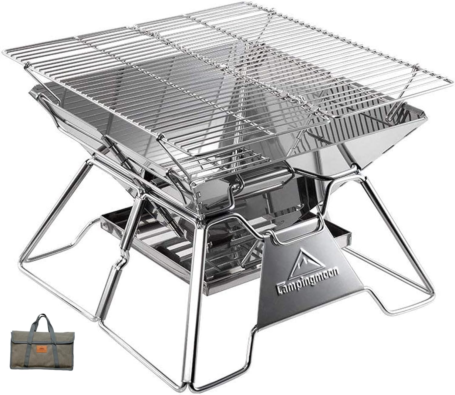 🥾 CAMPINGMOON Portable Stainless Steel Campfire Fire Pit Foldable Wood Burning Charcoal Grill for Camping Stove, Outdoor Cooking, Folding BBQ Grill 14-inch with Carry Bag MT-2 — Review, Key Features & Current Price