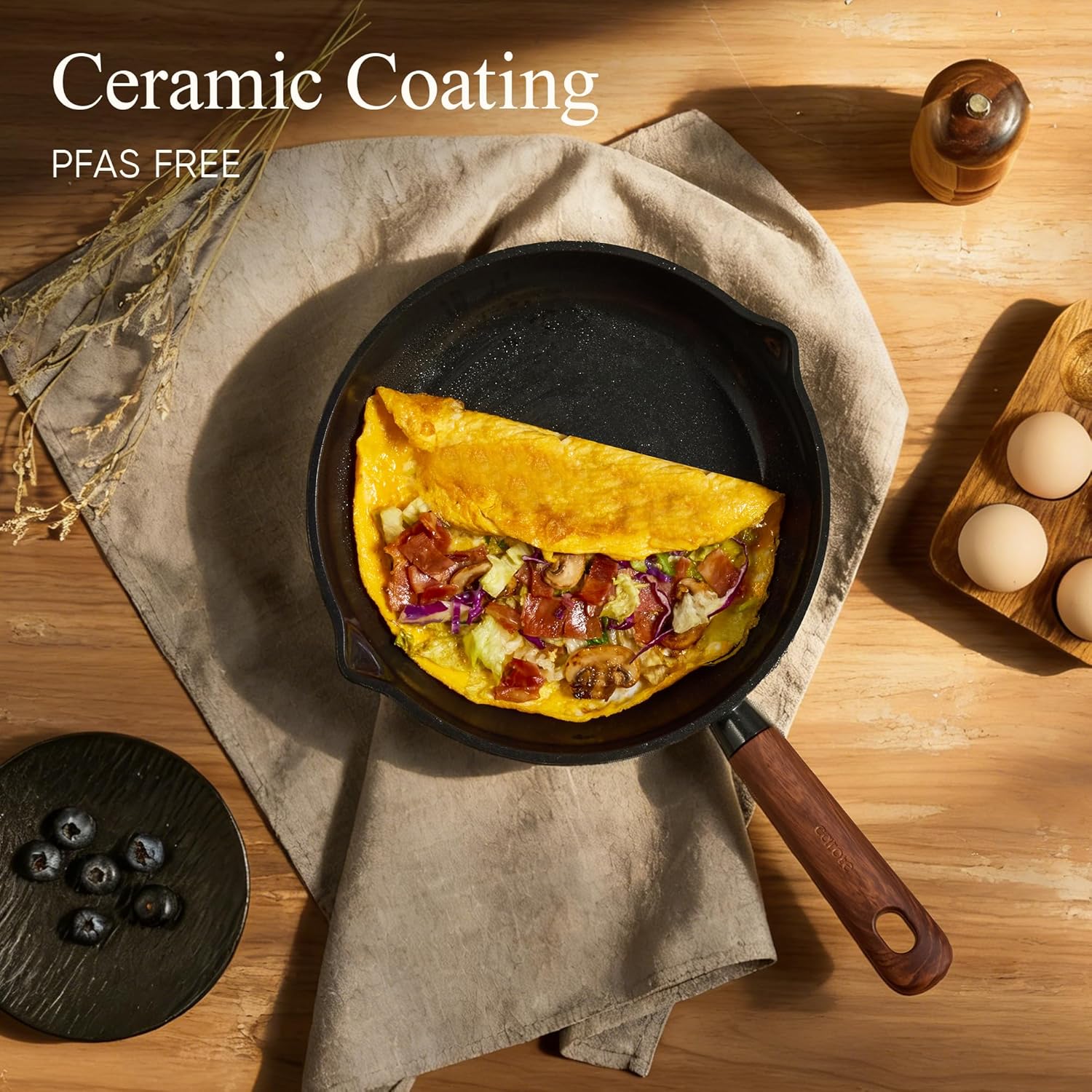 Ceramic nonstick coating with durability of perfection is free of PFAS PTFE Free, and the other harmful chemicals. You can enjoy your cooking on carote cookware safely & easily.